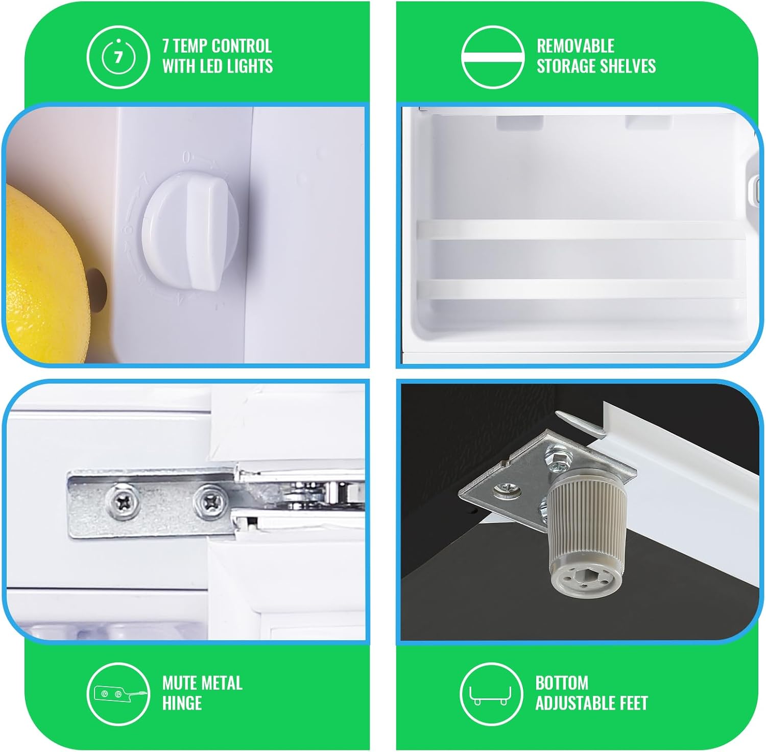 Adjustable Temperature Knob: This so mini fridge has seven temperature settings with exceptional cooling capability; The freezer maintains temp ranging from -0.4 °F to 32 °F, while the refrigerator maintains keeps temp between 32 °F to 50 °F