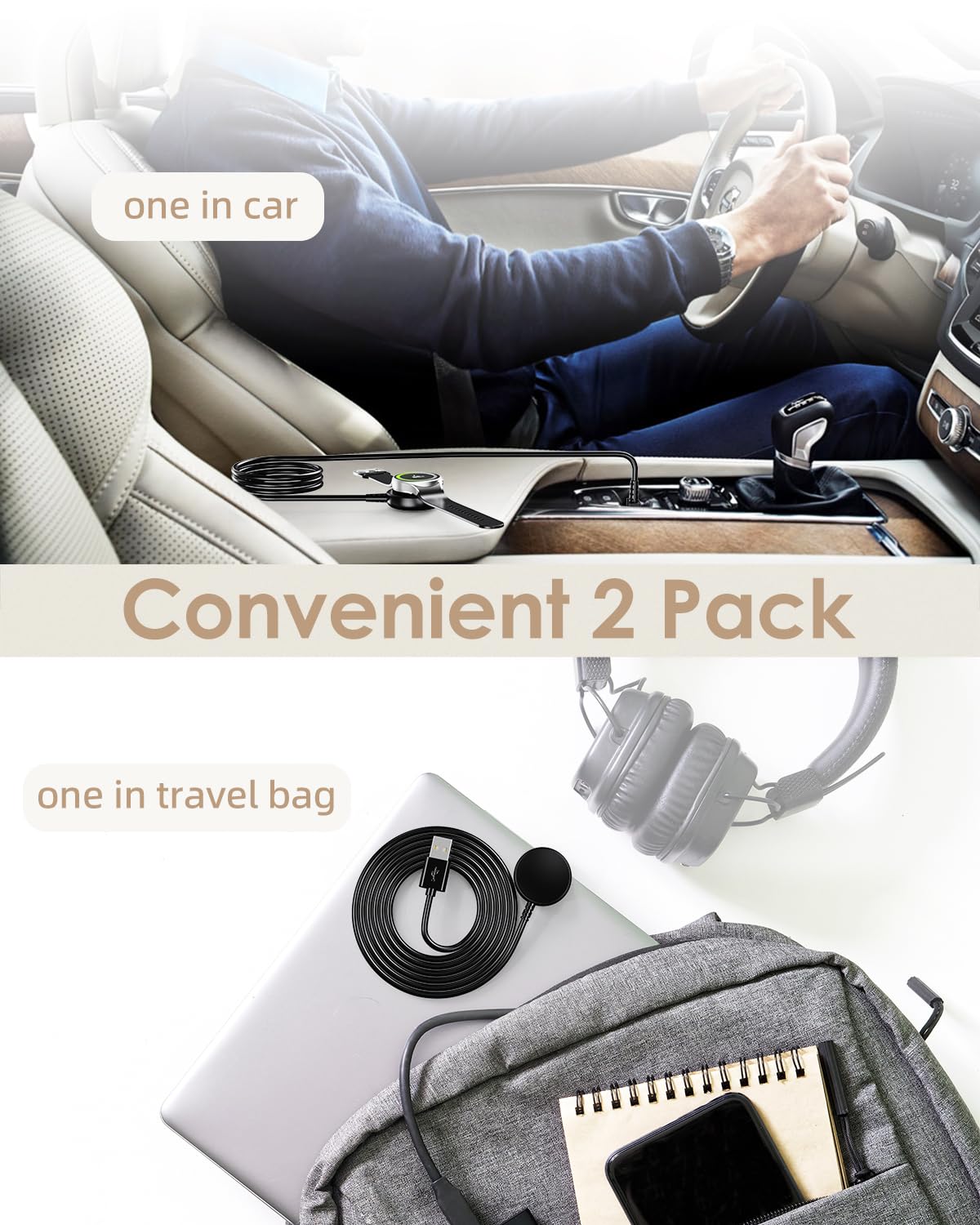 2 Pack for Samsung Galaxy Watch Charger Compatible with Watch 8/8 Classic/Ultra/7/6/6 Classic/5/5 Pro/4/4 Classic/3/Active/FE USB A Magnetic Fast Charging Dock Accessories 3.3FT