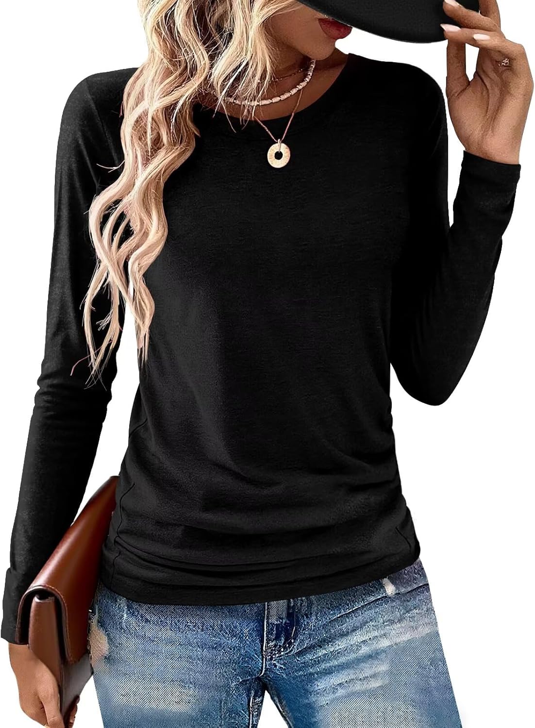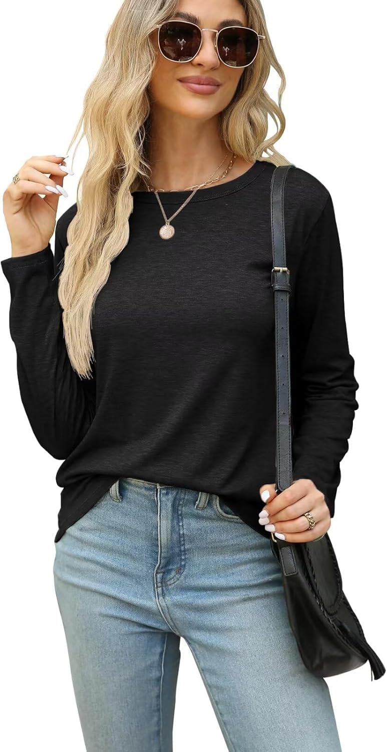 2 Pack Womens Tops Crewneck Soft Long Sleeve Shirts Fall Clothes Casual Tshirts Basic Tee