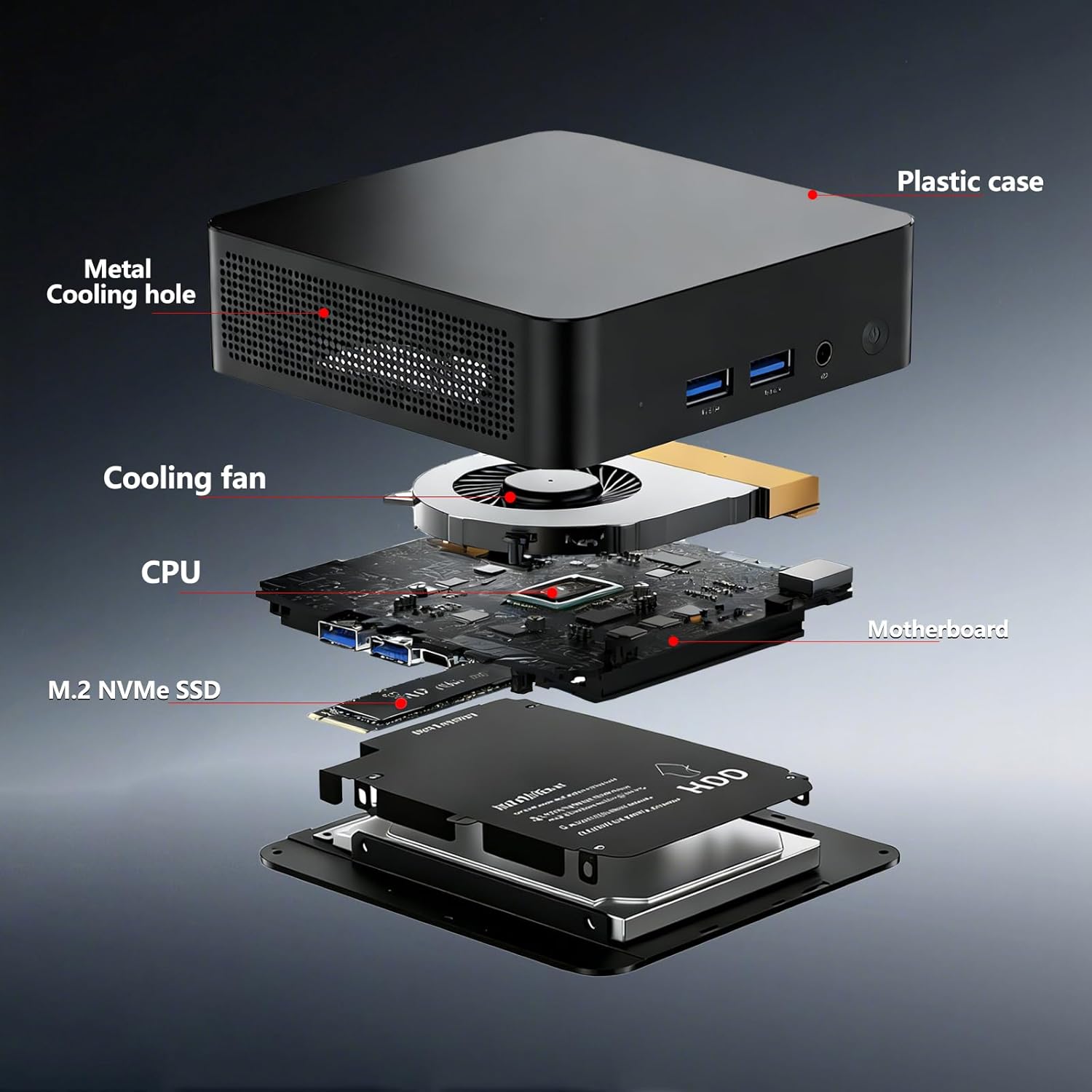 ✅【Large Memory & Storage Support】Mini computer features built-in 16GB DDR4 high-speed RAM and a 1TB M.2 2280 SSD, providing ample storage and enabling faster multitasking with smooth application switching. Additionally, it is equipped with a large silent CPU fan, a copper heat sink, and a dedicated SSD cooling shield. These components work together to enhance heat dissipation, ensuring the system runs efficiently and reliably.