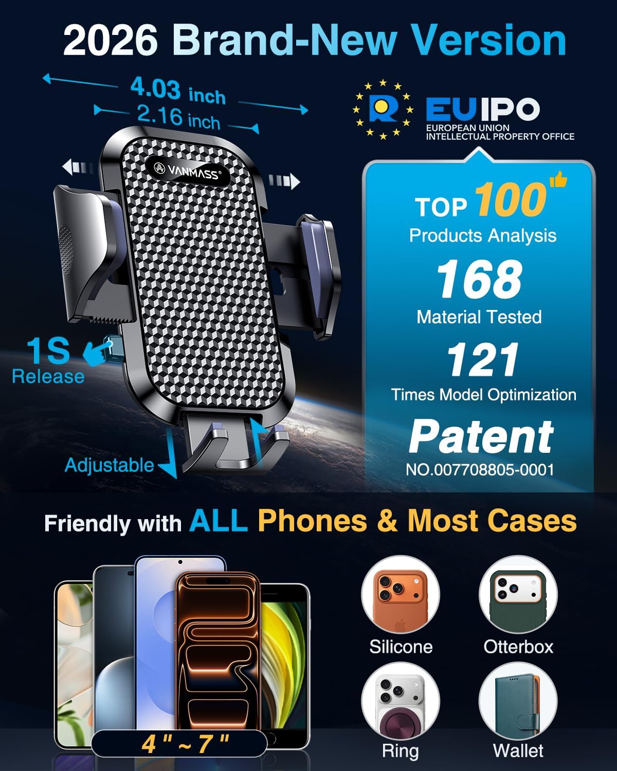 2026 Durable & Stable Dual Upgraded, VANMASS TOP Car Phone Mount