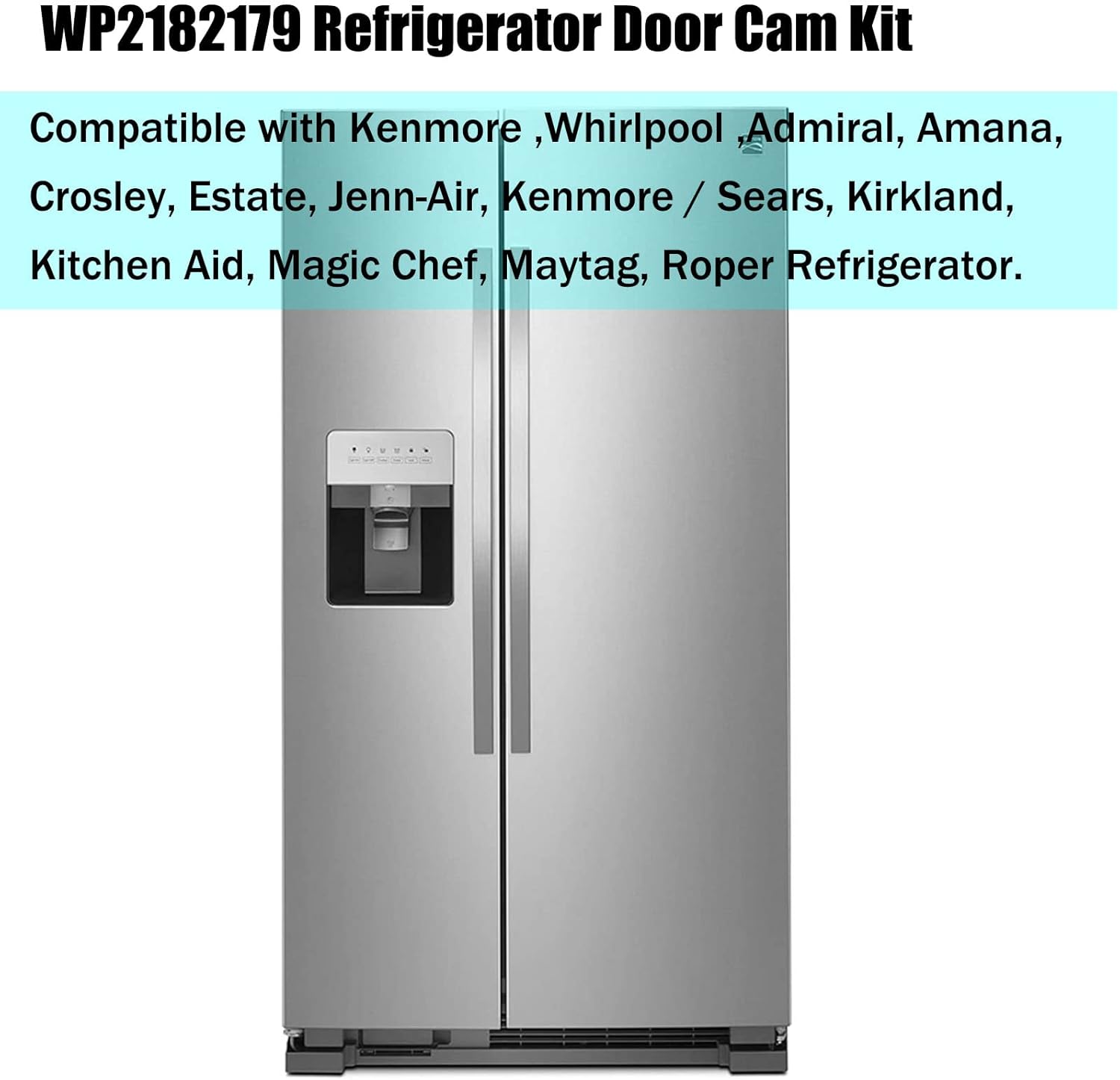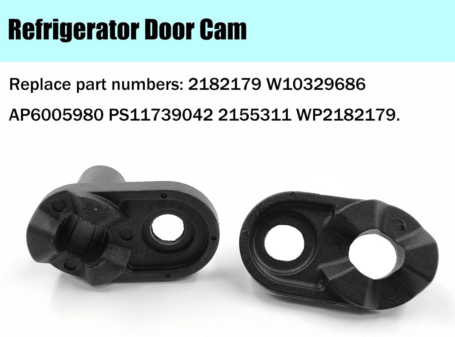 【2182179 Refrigerator Door Cam Kit 】WP2182179 Compatible with Kenmore ,Whirlpool ,Admiral, Amana, Crosley, Estate, Jenn-Air, Kenmore / Sears, Kirkland, Kitchen Aid, Magic Chef, Maytag, Roper Refrigerator. Refrigerator Door Cam Replace part numbers: 2182179 W10329686 AP6005980 PS11739042 2155311 WP2182179.(Screws not included).