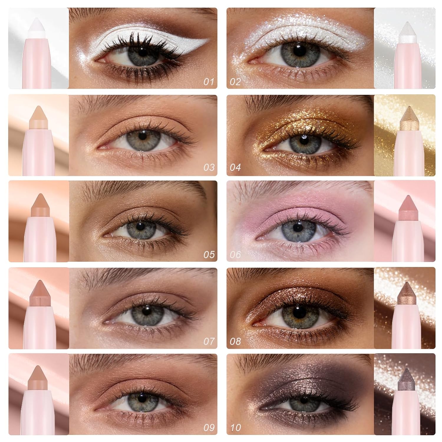 Easy to Use:This eye shadow pen is designed to fit your eyes, so you can easily use it with one hand. Simply apply a single touch along the base of the eyelashes to create a uniformly colored eye makeup. Whether it’s a natural base for daily makeup look or a deep gradient for eye catching parties, it can be quickly done, making it easy to create versatile eye makeup styles!