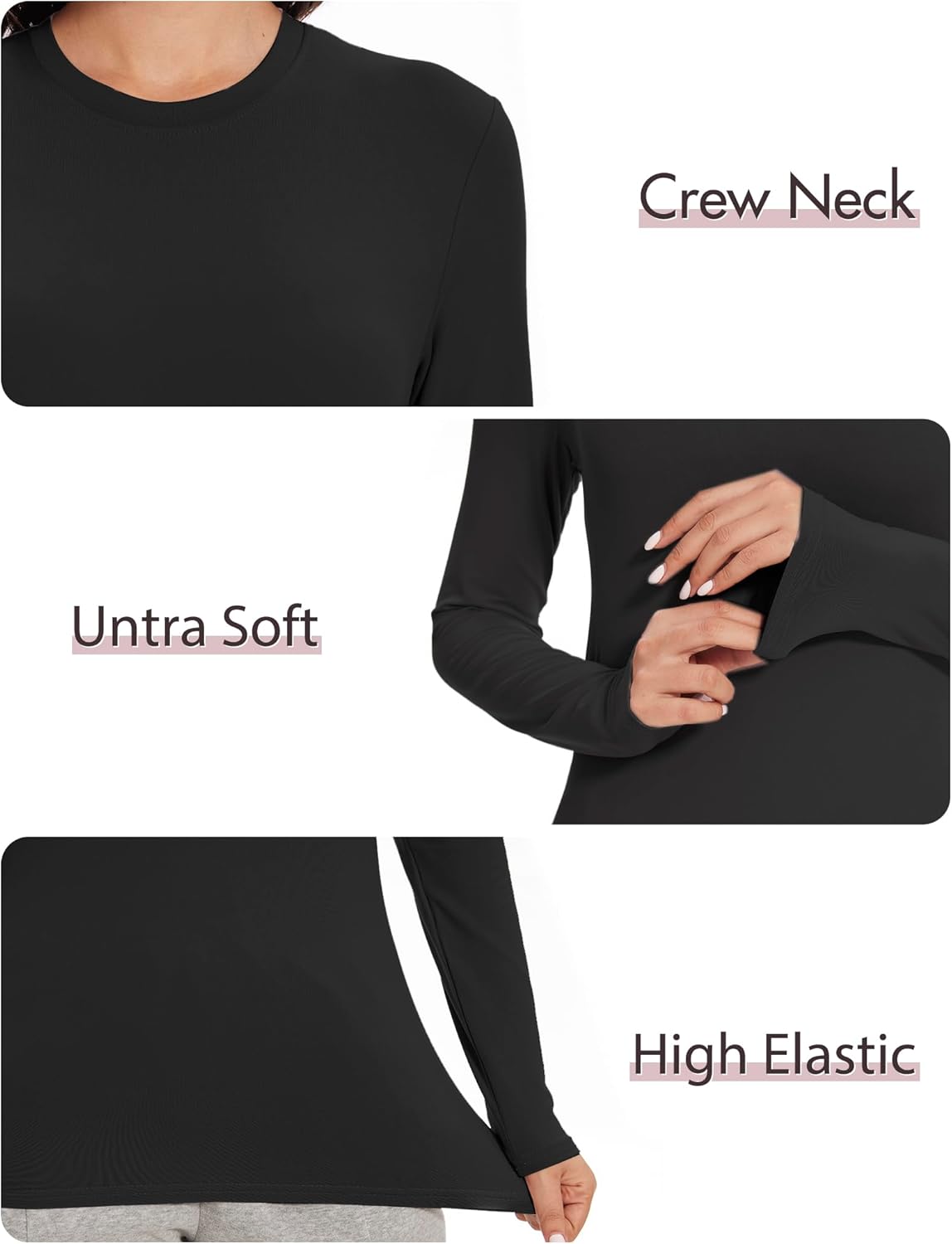 5 Pack Womens Basic Long Sleeve Shirts Crew Neck Slim-Fit Fitted T Shirts Tops Undershirts Underscrub Baselayer