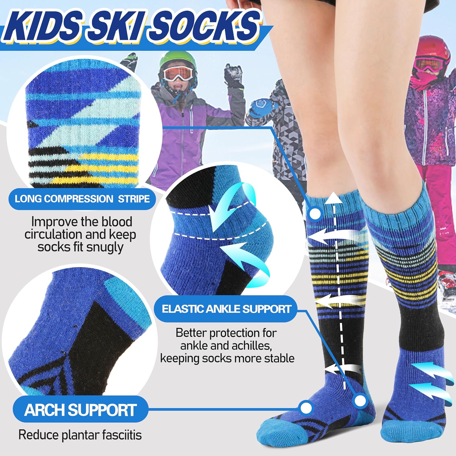 ANTSANG Kids Merino Wool Ski Socks 3 Pairs Boys Girls Thermal Warm Thick Winter Cushioning Socks for Snowboarding Skiing