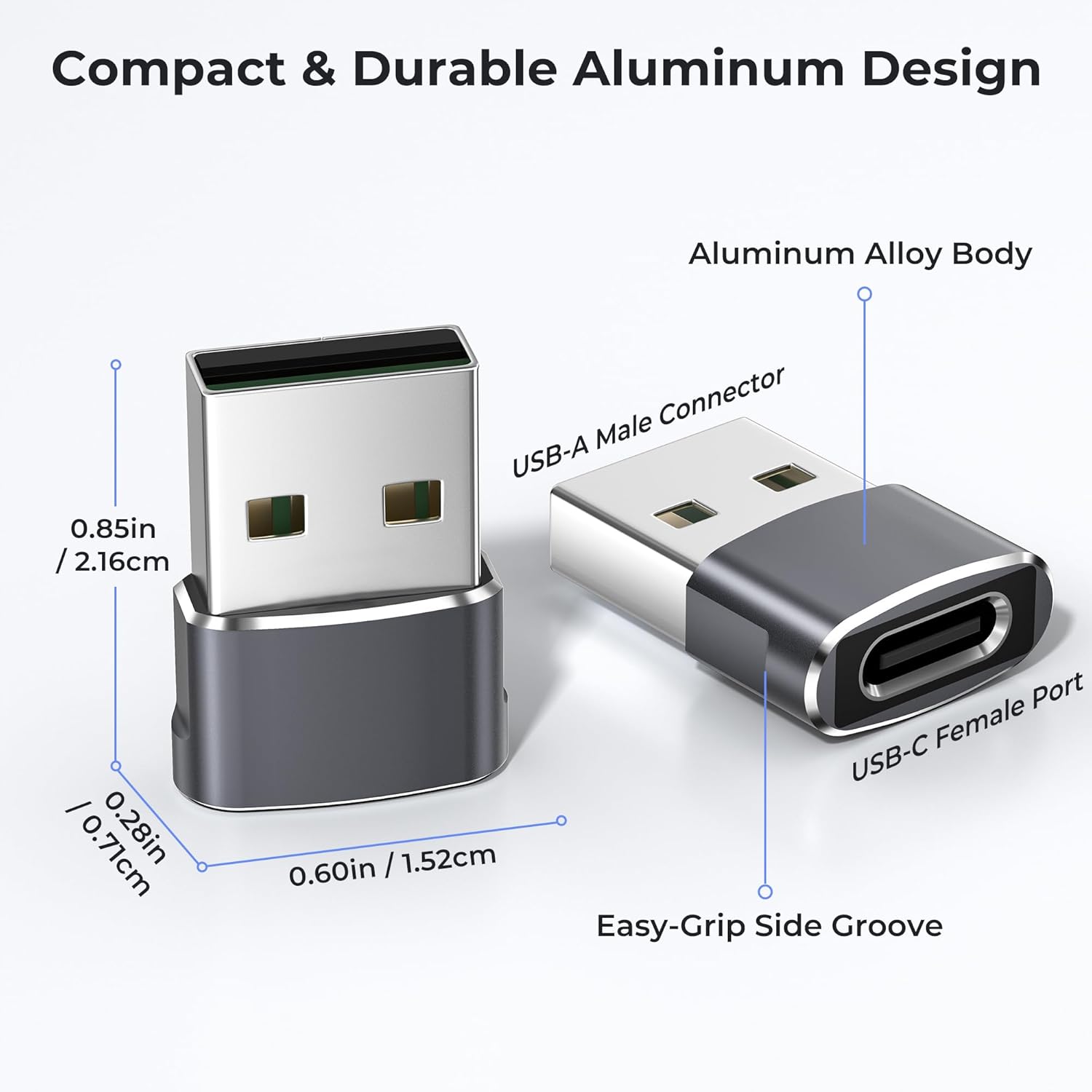 DURABLE ALUMINUM ALLOY HOUSING: Built with an aluminum alloy shell that helps improve durability and heat dissipation compared to plastic adapters. The solid metal body protects the internal USB 2.0 components for more stable, reliable charging and data transfer over time.