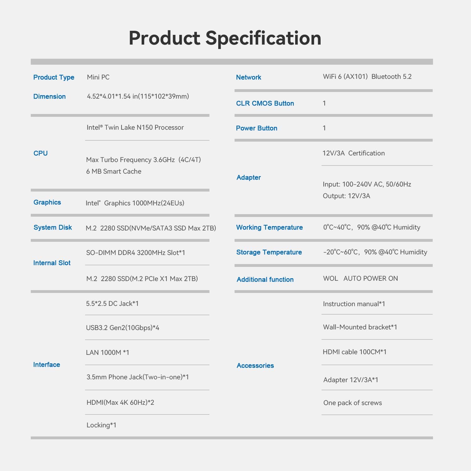 【Rich Interfaces & Professional After-Sales Service】The Beelink N150 micro PC is designed with 4*USB3.2 GEN2, 2*HDMI, 1*RJ45 1000M LAN, 1*Audio Jack (HP&MIC), 1*DC Jack, easily meet office business needs, home audio and video needs, a great to use as a server for media. If you have any questions about our mini pc, Please don’t hesitate to contact us. We offer lifetime technical support and 7/24 hours of customer service