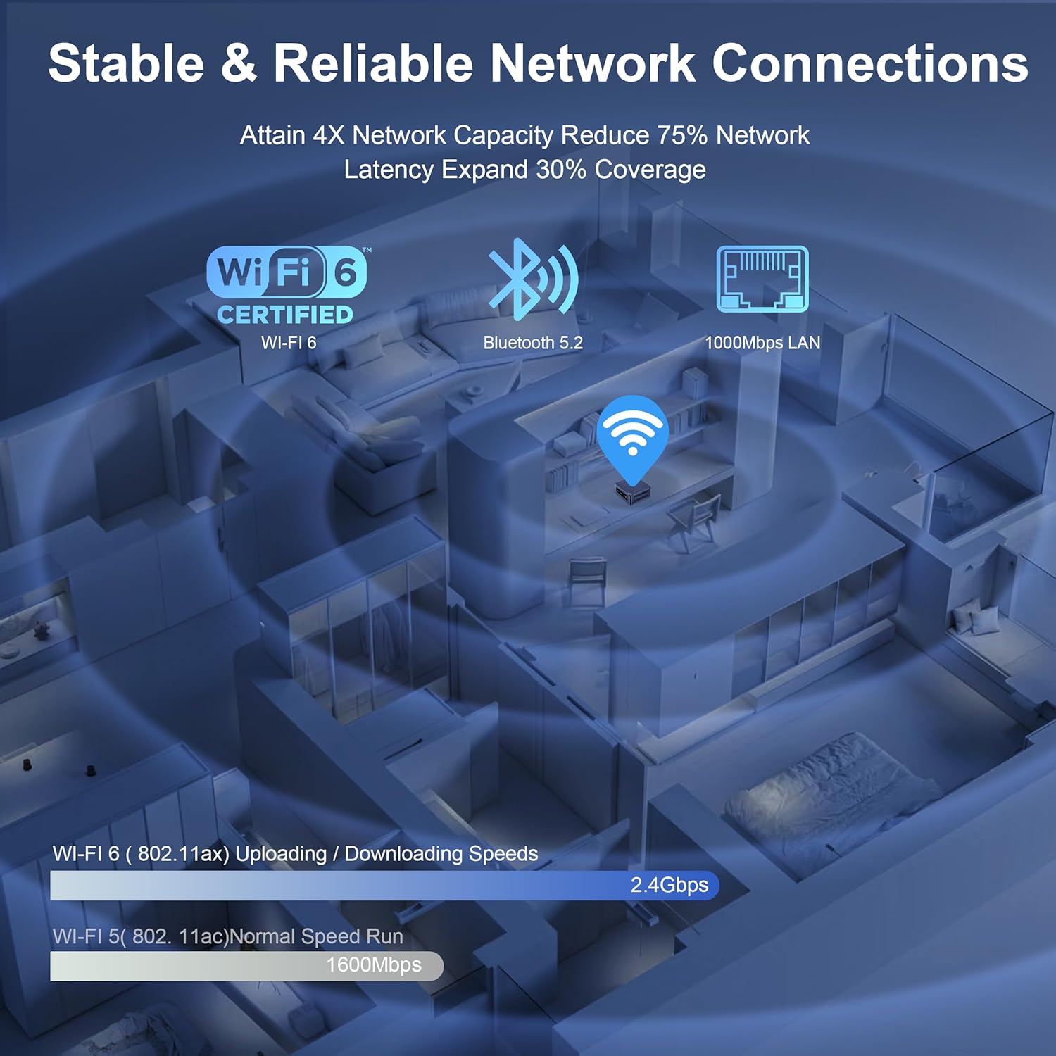 【High-Speed and Stable Network】The mini desktop pc built-in 1000Mbps LAN port and supports Wi-Fi 6 (802.11 ax) for ultra-fast wireless connections, enabling smooth streaming and speedy downloads. Compared with Wi-Fi 5, Wi-Fi 6 is nearly 3 times faster, you can have a dedicated and undisturbed channel when playing games. Built-in Bluetooth 5.2 allows for effortless pairing with various peripherals, such as wireless keyboards, mice, earphones, monitoring camera, printer, monitor, TV, projector etc