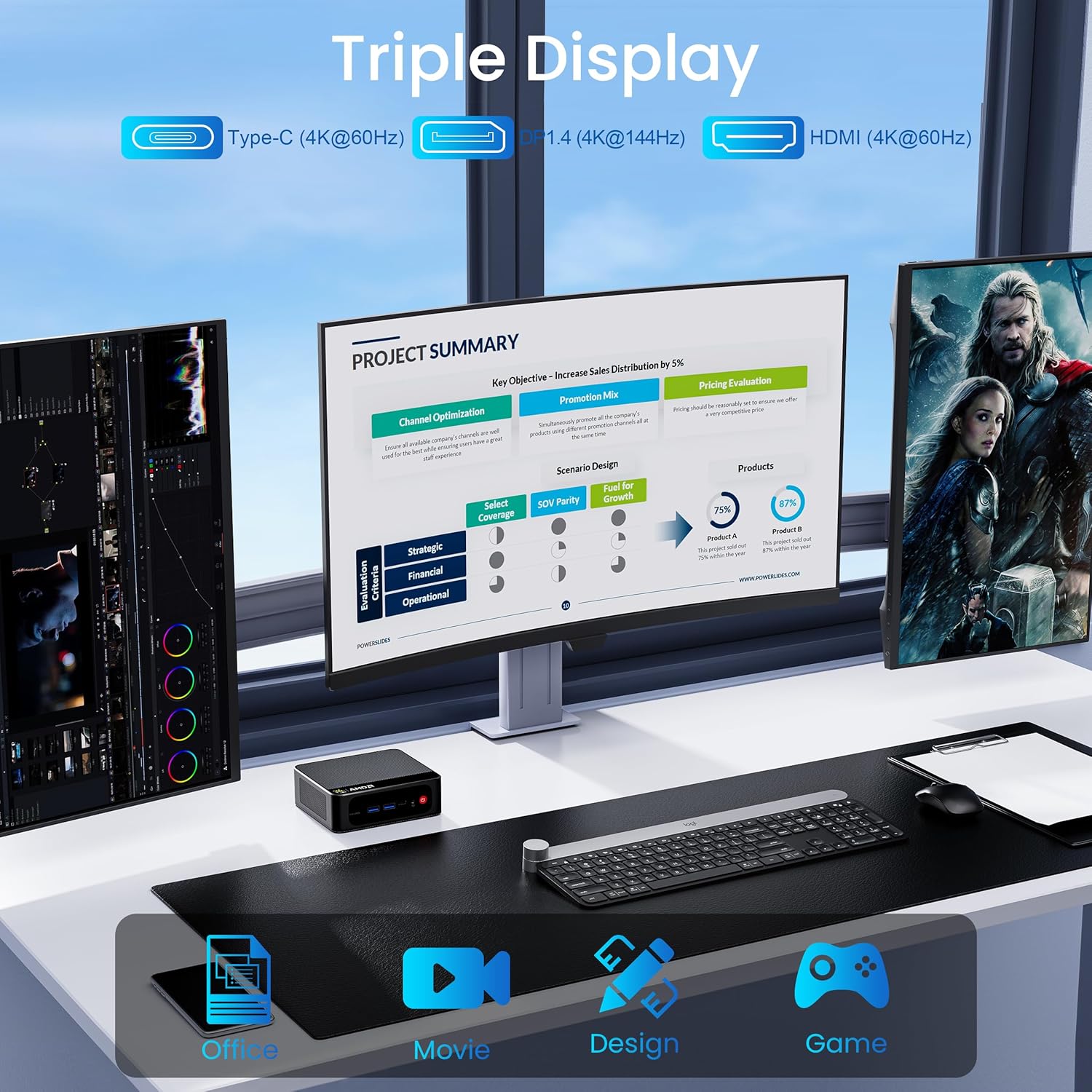 【Support 4k Triple Screens Display】Beelink SER5 mini desktop computer AMD Radeon Graphics 7core 1800MHz delivers powerful graphics processing. The micro computer Supports 4K three screen display(1*HDMI2.0(4K@60Hz)+1*DP1.4(4K@144Hz)+1*Type-C(4K@120Hz). Enjoy super first-class picture quality and easily improve work efficiency, reduce waiting time. Fully capable of browsing the Internet, using Office, PS applications, 4K video playback and more