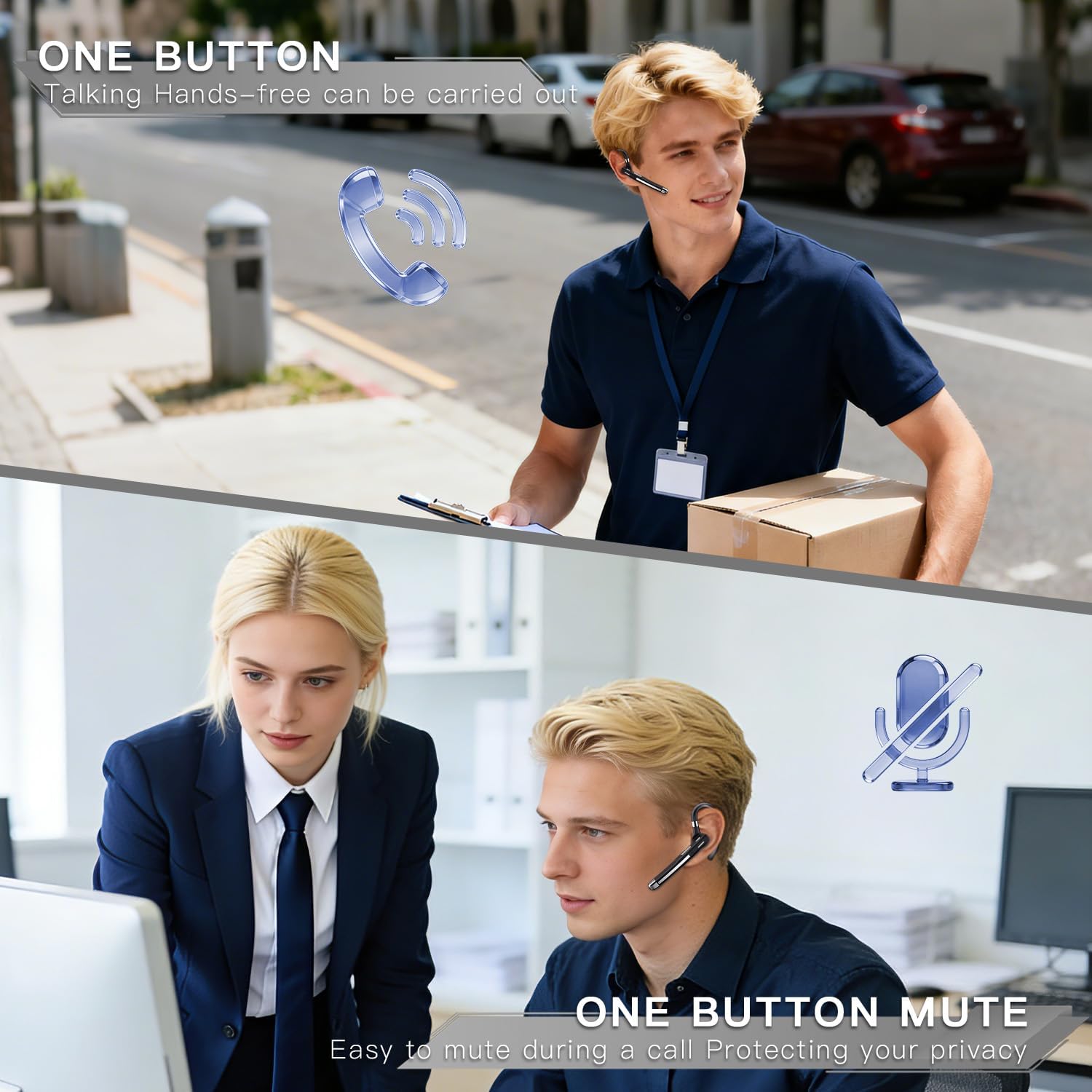 👍𝐒𝐮𝐩𝐞𝐫 𝐂𝐥𝐞𝐚𝐫 𝐕𝐨𝐢𝐜𝐞 𝐂𝐚𝐥𝐥𝐬: The wireless headset is equipped with a unidirectional microphone and CVC8.0 noise cancellation technology. This trucker Bluetooth headset captures crystal-clear audio even in noisy environments, effectively blocking out ambient noise for a clear and smooth call experience. A new mute function allows you to mute your voice during a call by pressing the ‘MFB’ button, perfect for private conversations like meetings, ensuring a secure and distraction-free conversation.