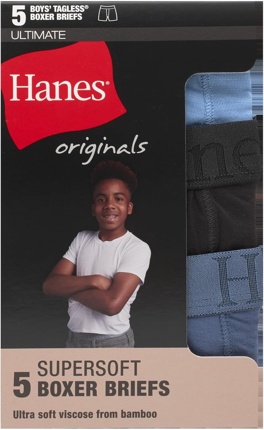 Buy boys Hanes Originals Ultimate Supersoft Boys’ Boxer Brief Underwear, Assorted, 5-pack online from amazon or ebay or walmart boys Hanes Originals Ultimate Supersoft Boys’ Boxer Brief Underwear, Assorted, 5-pack