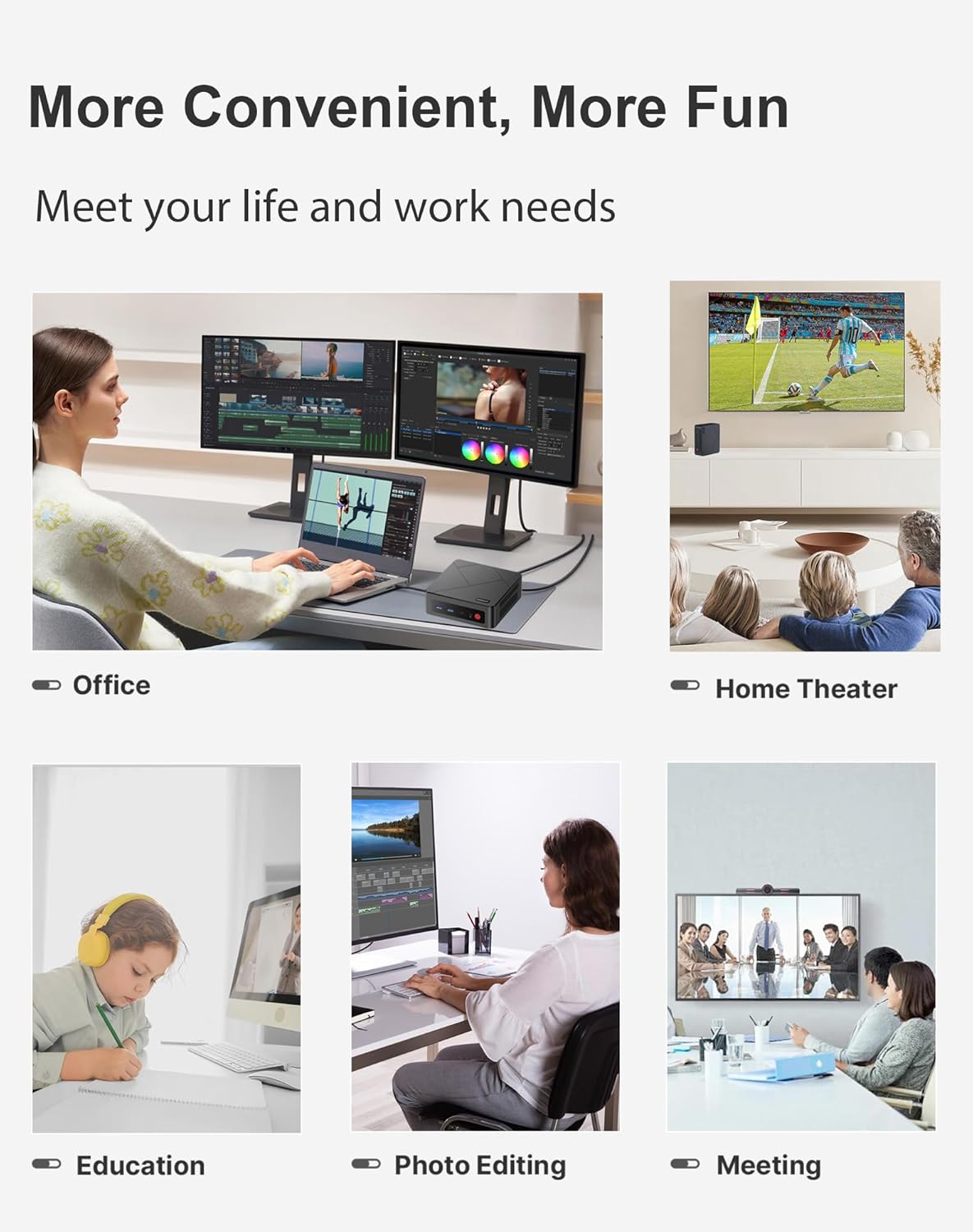 【Dual 1000Mbps NIC LAN】The 3550H mini pc equipped with the Realtek RTL8111H chip includes Dual 1000Mbps ports. You can enjoy enhanced performance, reliable connections, bandwidth aggregation, and intelligent load balancing, high-speed home or office networks. Whether for office work, teaching, photo editing, home theater setups, or conference presentations, this mini PC handles it all with ease.
