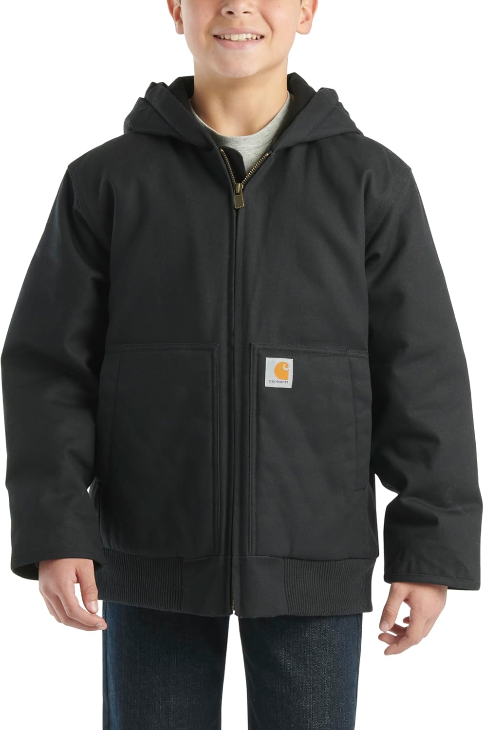 Carhartt Boys’ Flannel-Lined Hooded Canvas Insulated Zip-Up Jacket