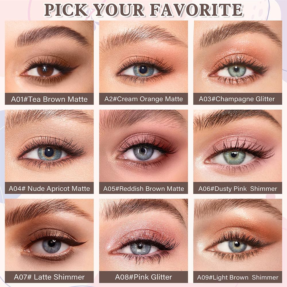 Easy to Use: Offers highly pigmented, blendable shades in matte and shimmer glitter finishes ,Buildable formula transitions from subtle daytime sheen to bold smoky glitter—ideal for hooded lids or sheer-to-statement looks