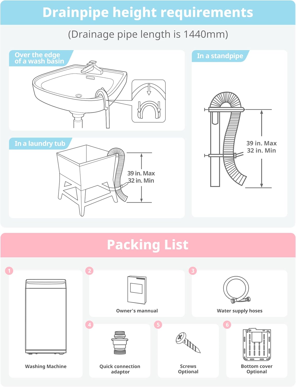This top load compact washing machine with the only 18.1inch in width, 17.7inch in-depth, and 31.5inch in height, this portable washer is able to be stored easily. You can store it in your cabinet, RV, dorm, or even bathtub! Even better, it comes with wheels and carries handles for easy movement. It is a perfect choice for small households with limited space and minimal laundry loads.