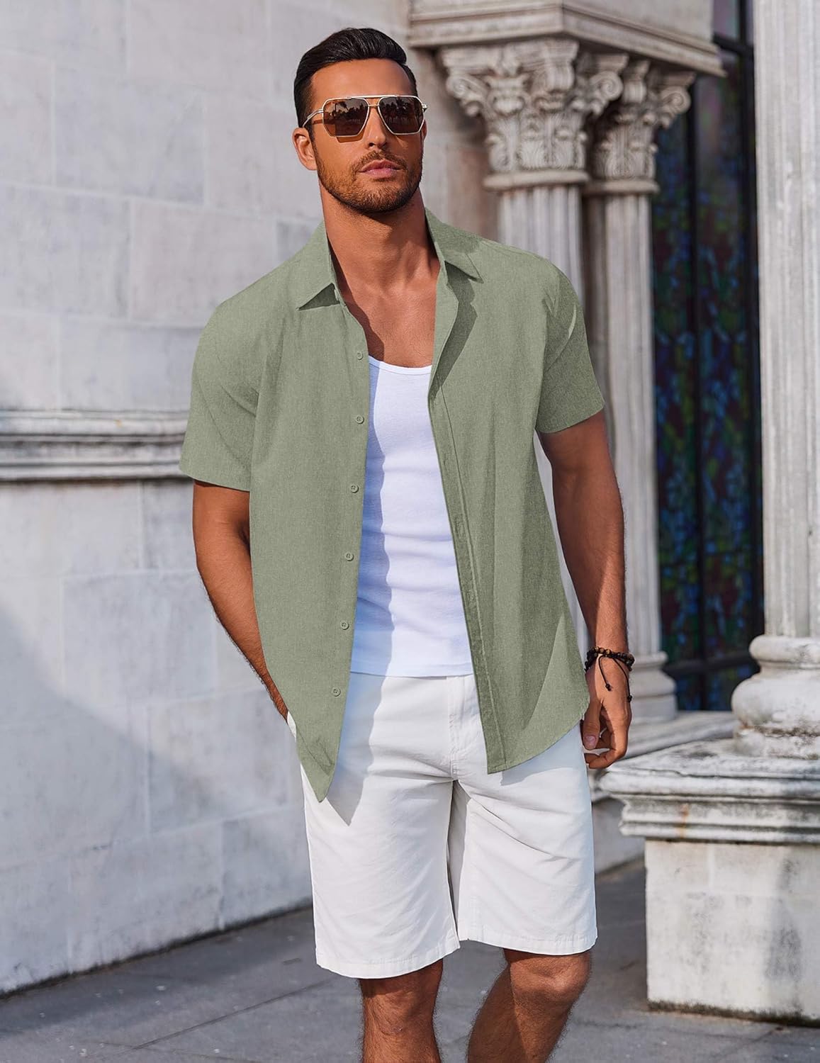 COOFANDY Men’s Button Down Shirts Short Sleeve Casual Summer Beach Shirts Vacation Wedding Shirts