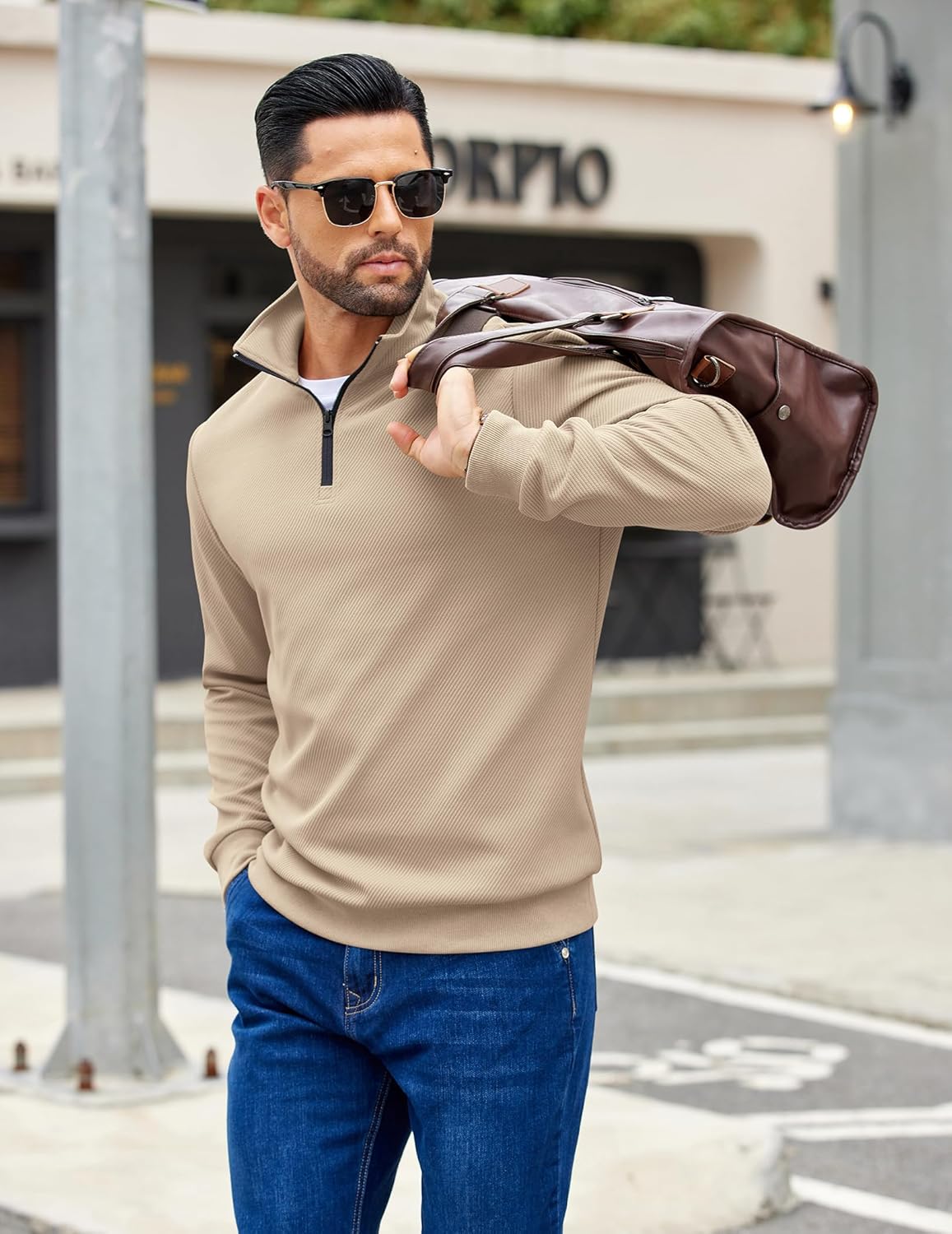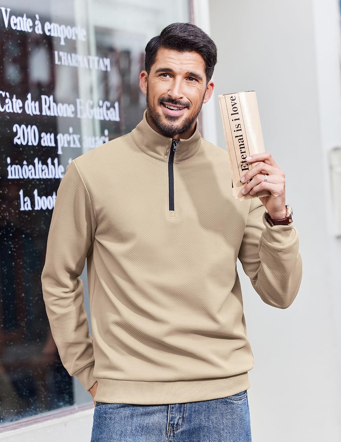 COOFANDY Mens Quarter Zip Pullover Sweatshirts Lightweight Long Sleeve Mock Neck Sweater Polo