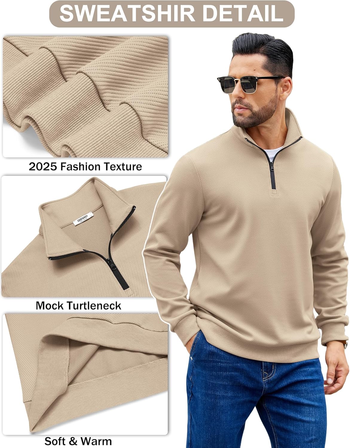 Buy COOFANDY Mens Quarter Zip Pullover Sweatshirts Lightweight Long Sleeve Mock Neck Sweater Polo online from amazon or ebay or walmart COOFANDY Mens Quarter Zip Pullover Sweatshirts Lightweight Long Sleeve Mock Neck Sweater Polo