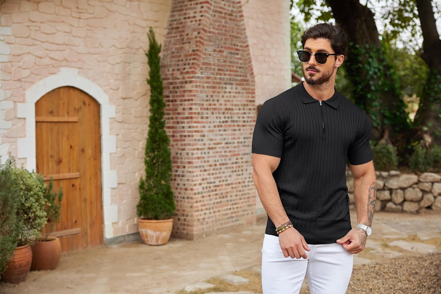 Buy COOFANDY Men’s Zipper Polo Shirts Short Sleeve Ribbed Knit Polo T Shirts Fashion Casual Golf Shirts online from amazon or ebay or walmart COOFANDY Men’s Zipper Polo Shirts Short Sleeve Ribbed Knit Polo T Shirts Fashion Casual Golf Shirts