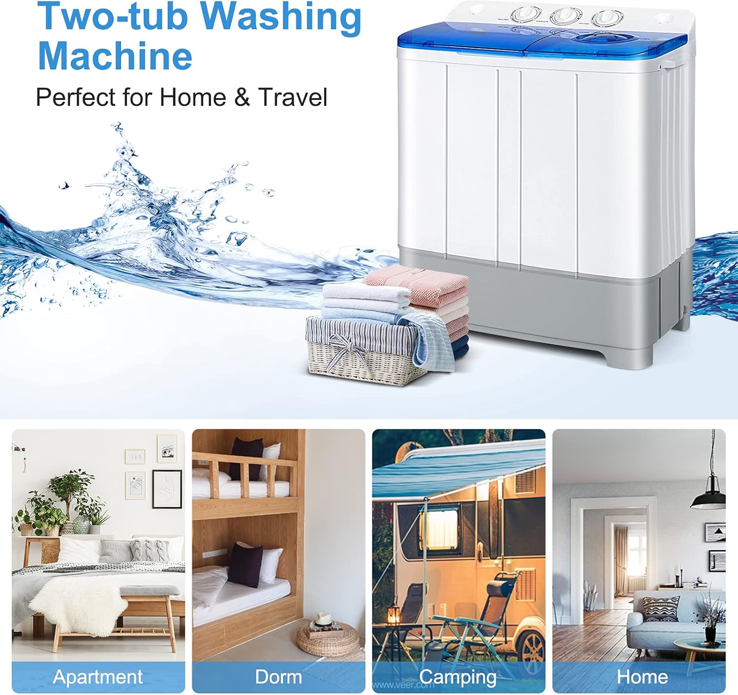 Buy COSTWAY Portable Washing Machine, Twin Tub 22Lbs Capacity, Compact Washer(13.2Lbs) and Spinner(8.8Lbs) with Control Knobs, Built-in Drain Pump, Semi-Automatic Laundry washer for Apartment, RV (Blue) online from amazon or ebay or walmart COSTWAY Portable Washing Machine, Twin Tub 22Lbs Capacity, Compact Washer(13.2Lbs) and Spinner(8.8Lbs) with Control Knobs, Built-in Drain Pump, Semi-Automatic Laundry washer for Apartment, RV (Blue)
