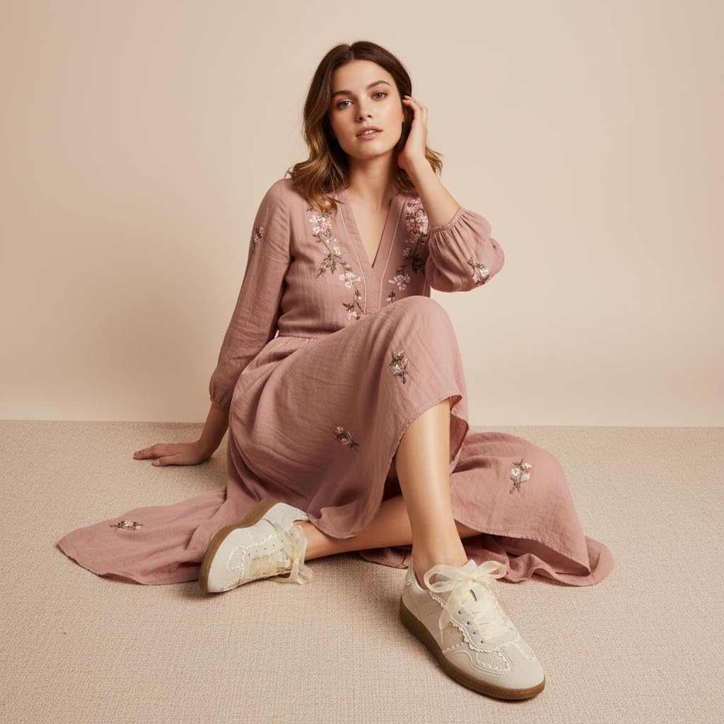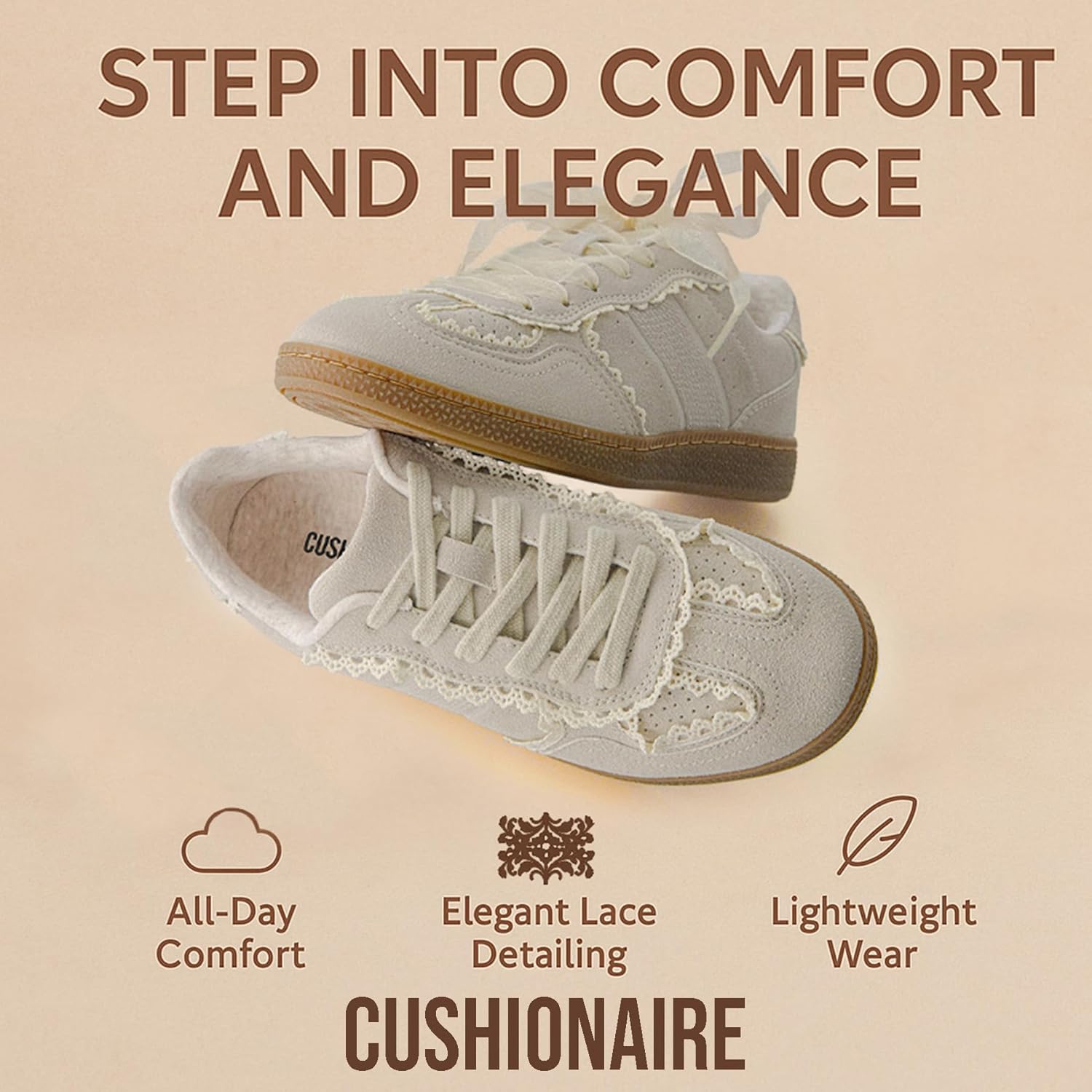 CUSHIONAIRE Belinda Women’s Lace Detail Casual Sneakers – Elegant Ribbon Lace-Up Shoes with Memory Foam