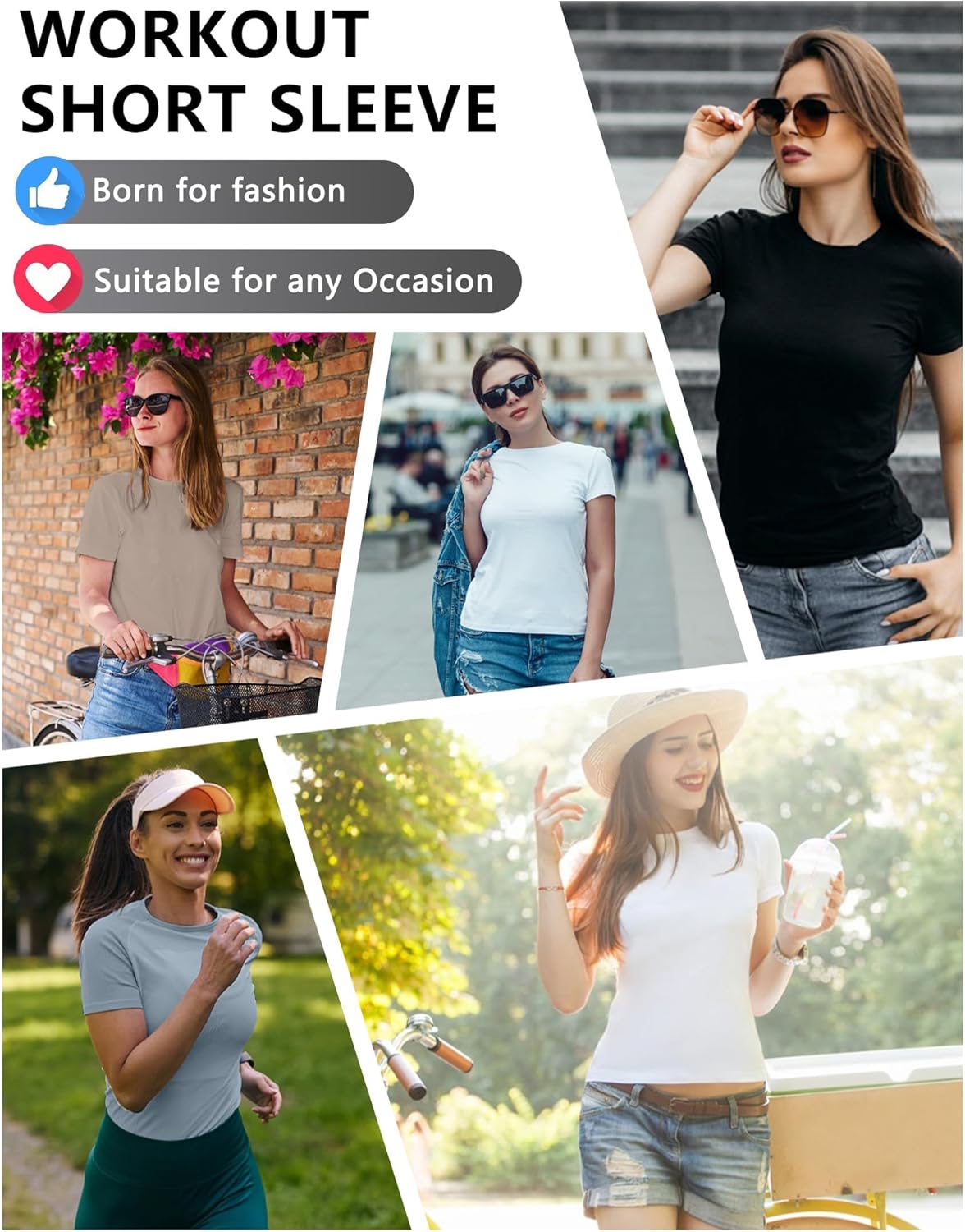 Dalavch 4 Pack Women’s Workout Shirts Compression Short Sleeve Crew Neck Running Yoga Gym Athletic Fitted Crop T-Shirts Top