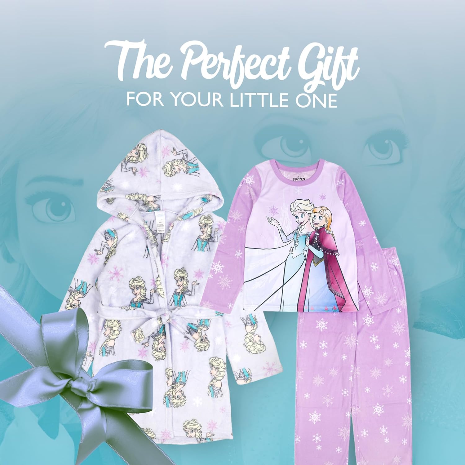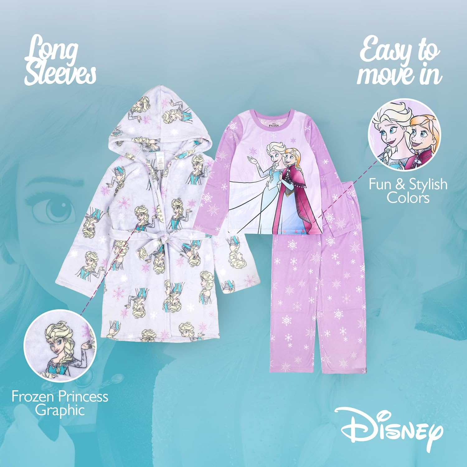 Disney Girls’ 3-piece Bathrobe & Loose-fit Long-Sleeve Pajama Set, Soft & Cute for Kids