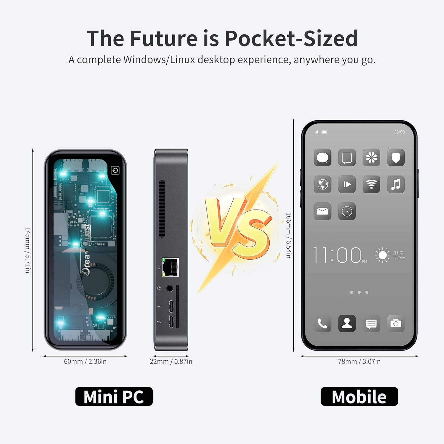 【Portable computer with dual multi-function USB port】Besides functioning as a traditional PC, this mini PC is equipped with two full-featured USB-C ports for easy connection to portable displays and projectors, and its compact, lightweight design makes it highly portable.