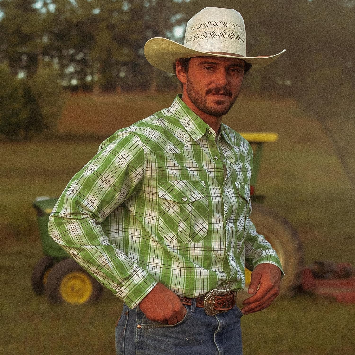 Dubinik Pearl Snap Shirts for Men – Long Sleeve Western Vintage Plaid Shirts