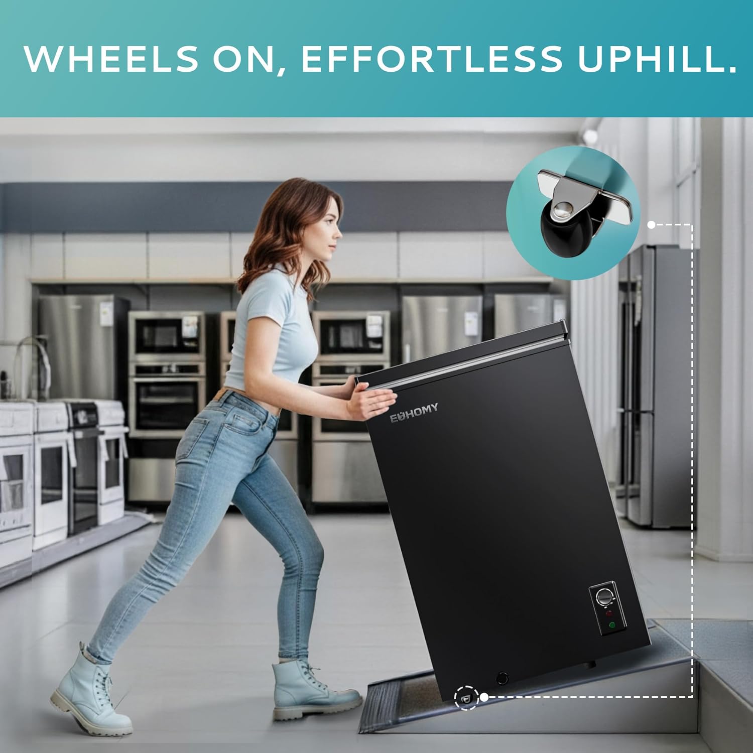 Buy EUHOMY 3.5 Cu.Ft Chest Freezer with Wheels, Small Deep Freezer Adjustable 7 Thermostat, Quiet Mini Freezer Free-Standing Top Door, Energy Saving for Apartment/Garage/Basement/Dorm/Home, New Black online from amazon or ebay or walmart EUHOMY 3.5 Cu.Ft Chest Freezer with Wheels, Small Deep Freezer Adjustable 7 Thermostat, Quiet Mini Freezer Free-Standing Top Door, Energy Saving for Apartment/Garage/Basement/Dorm/Home, New Black