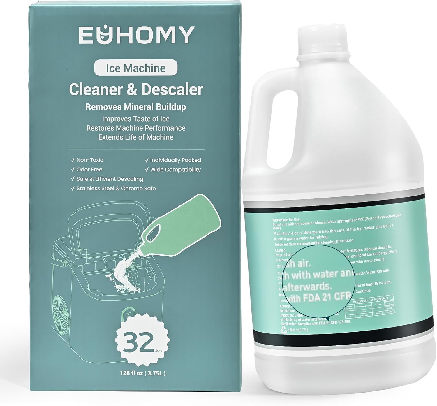 EUHOMY Max 33 Uses Ice Machine Cleaner Descaler (1 Gallon / 3.75L), 128 Fl OZ Ice Maker Cleaner, Ideal Universal Descaling Solution for All Brands Ice Maker, Single Use Coffee and Espresso Machines