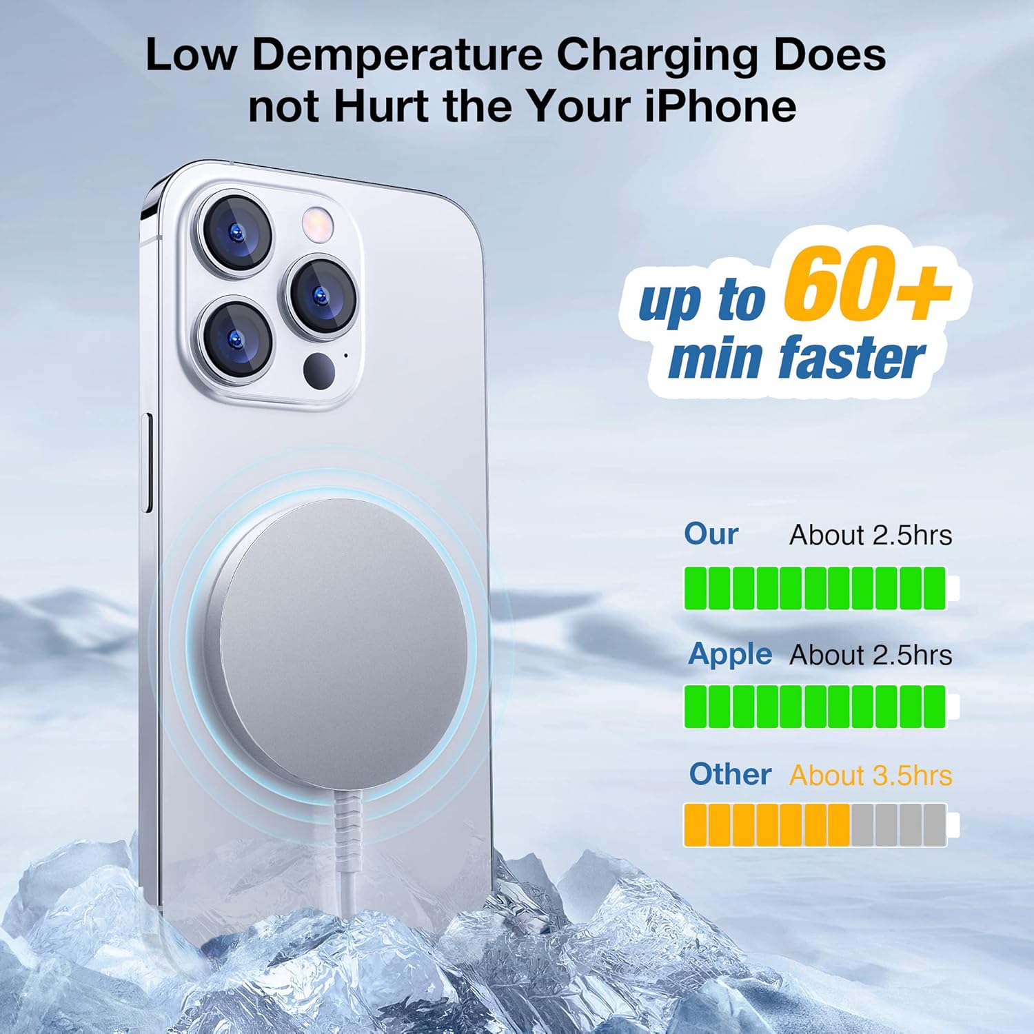 【Intelligent Safety Protection】The magnetic phone charger use the aluminum alloy shell, compared with gel and conventional materials better heat dissipation, so that the product always keep low temperature charging does not hurt the phone battery and built-in charging management chip, with over-current, over-voltage, over-temperature, short circuit, foreign objects and other multiple protection, full power intelligent power off, active for you to filter the danger.