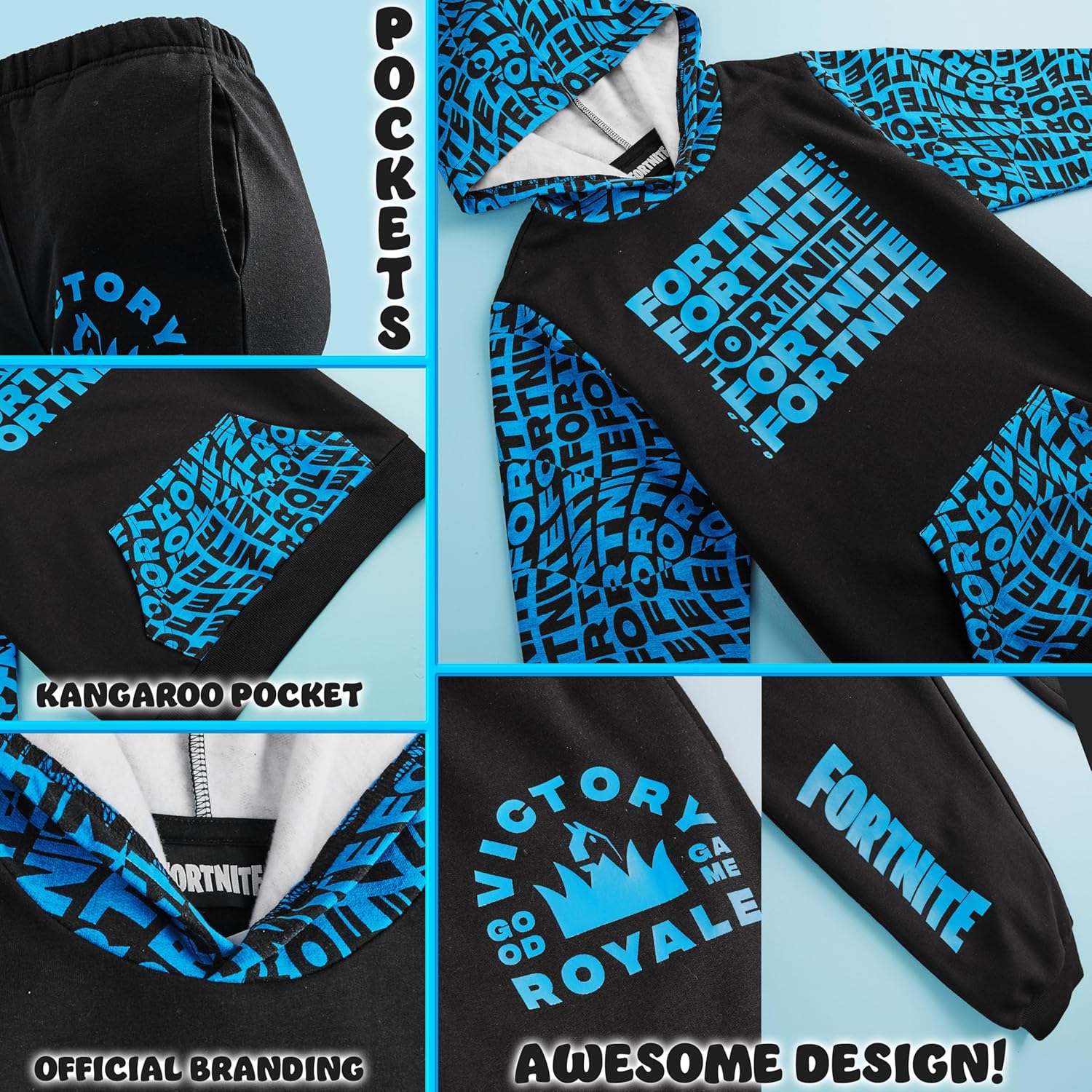 Fortnite Tracksuit Set for Boys, Teens, 2-Pc Hoodie & Joggers, Pullover Sweatshirt with Kangaroo Pocket, Gamer Gifts for Boys