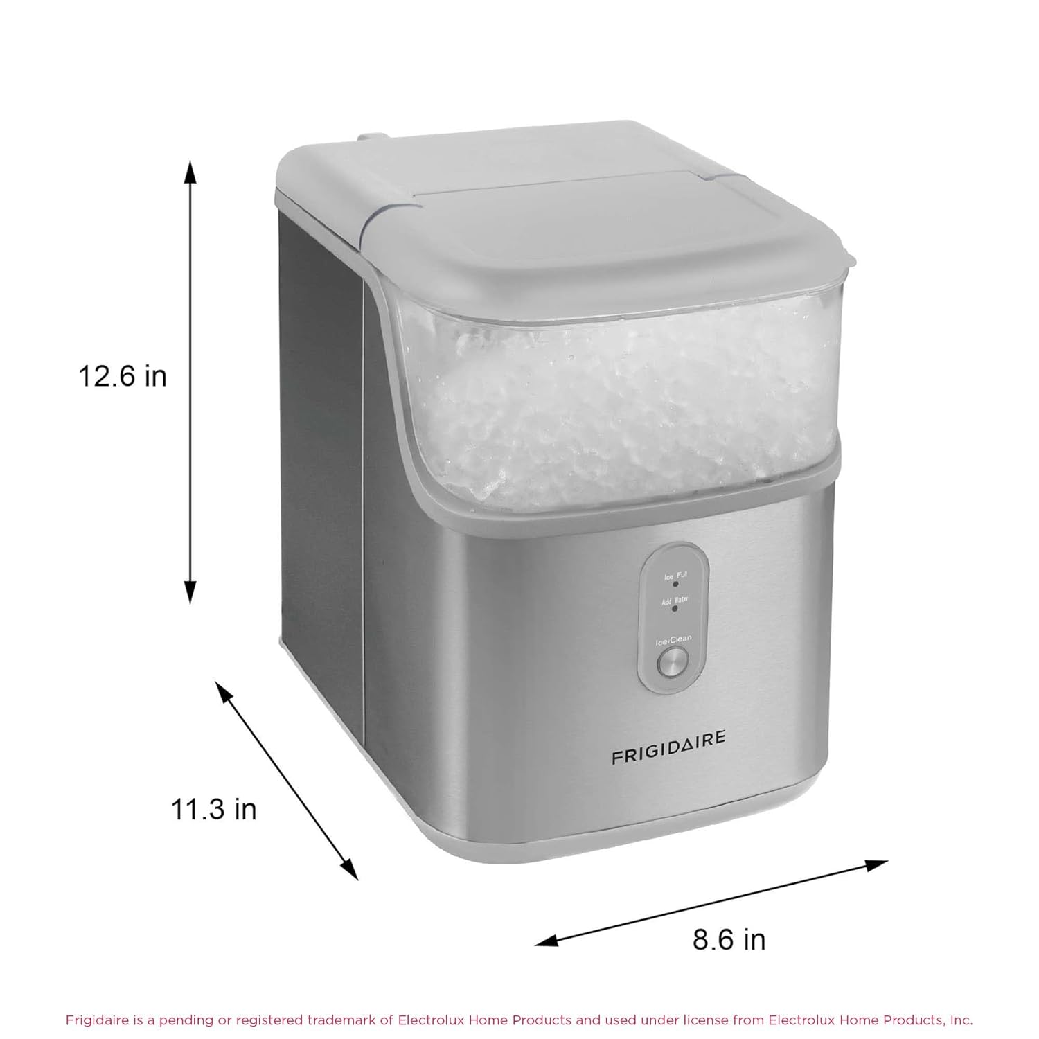 Frigidaire Countertop Crunchy Chewable Nugget Ice Maker, Compact, 33lbs per Day, Metallic Finish
