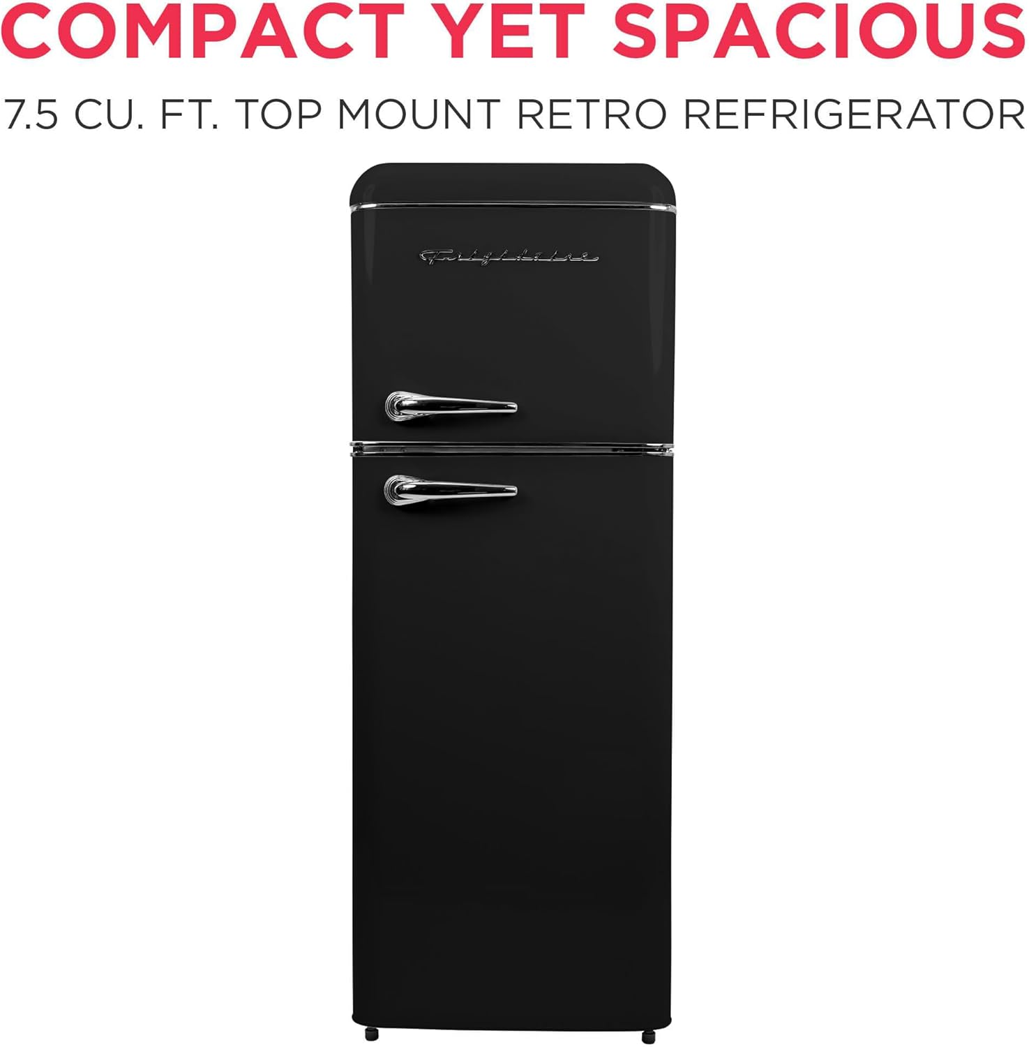 Frigidaire EFR756, 2 Door Apartment Size RETRO Refrigerator with Top Freezer, Chrome Handles, 7.5 cu ft