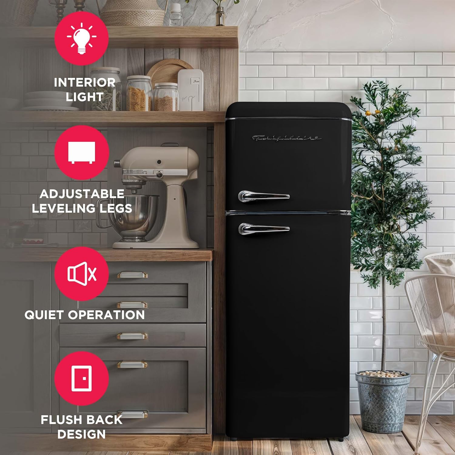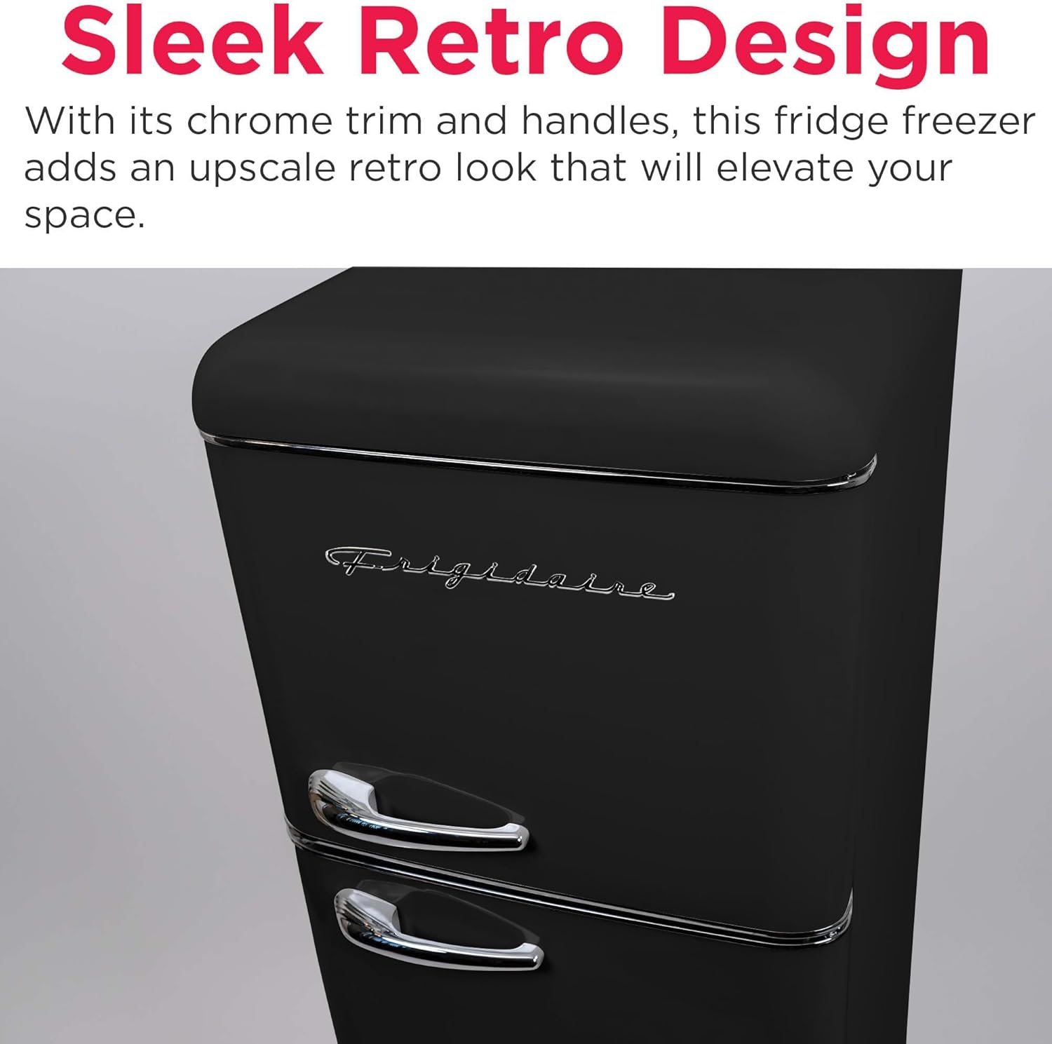 Sleek Retro Design – Featuring a sleek and durable retro design with chrome trim and handles, this small fridge freezer adds an upscale retro look that will elevate your space.