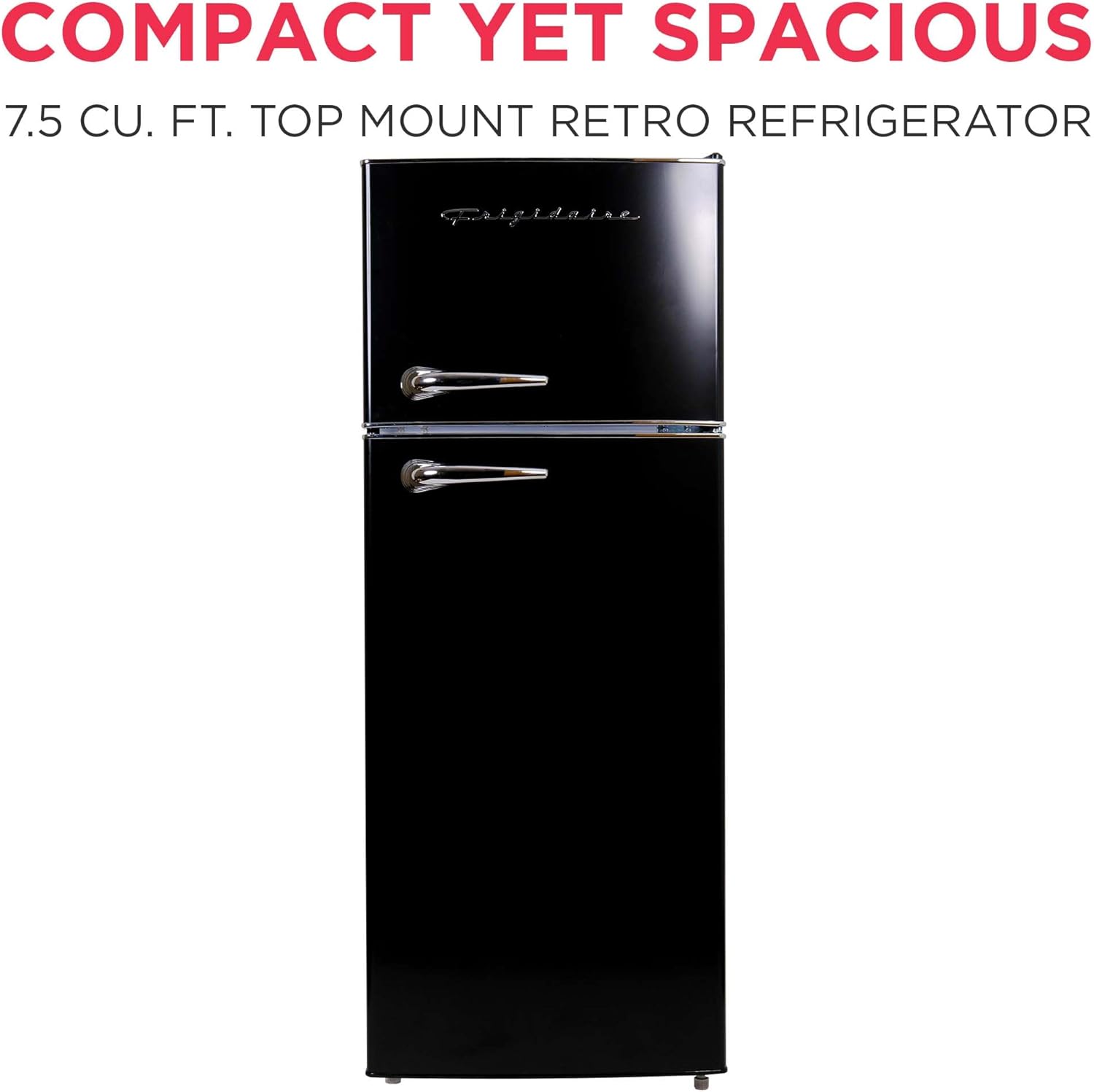 Frigidaire EFR786 Retro Apartment Size Refrigerator with Top Freezer – 2 Door Fridge with 7.5 Cu Ft of Storage Capacity, Adjustable Spill-Proof Shelves, Door & Crisper Bins, Black