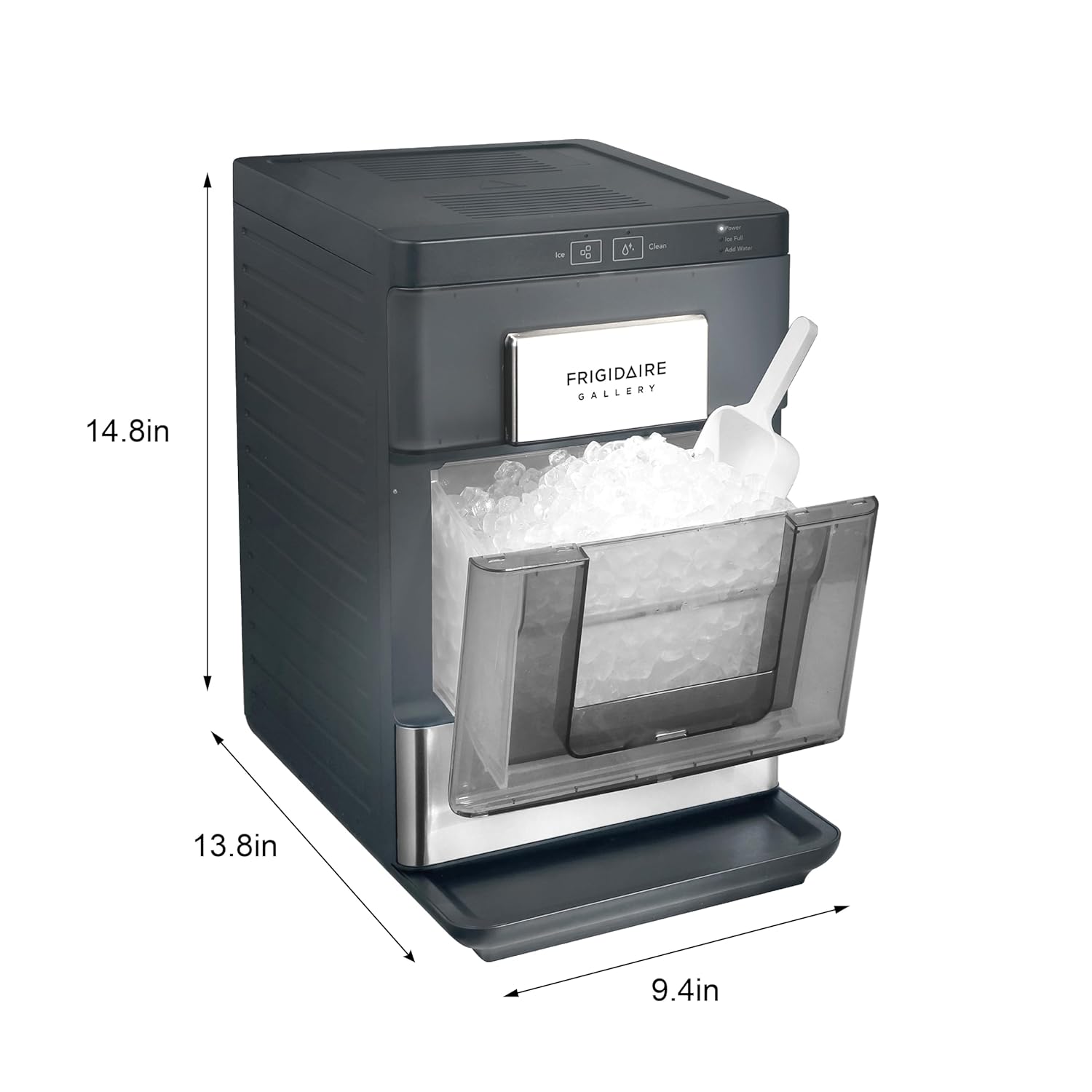 Frigidaire Gallery, 33 Lbs. Countertop Ice Maker, Nugget Shaped Ice, Stainless Steel Trim (Black)
