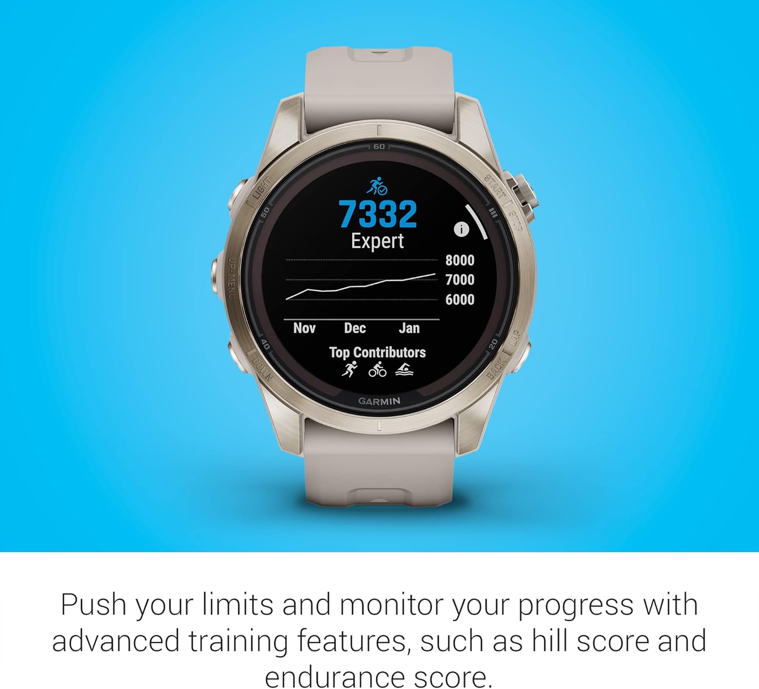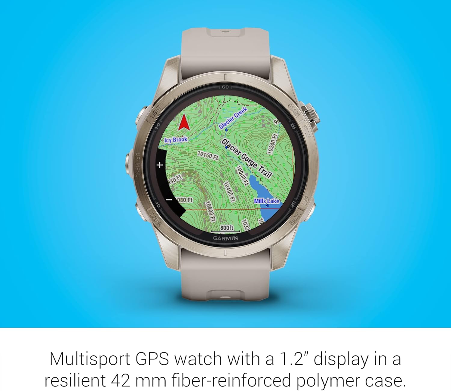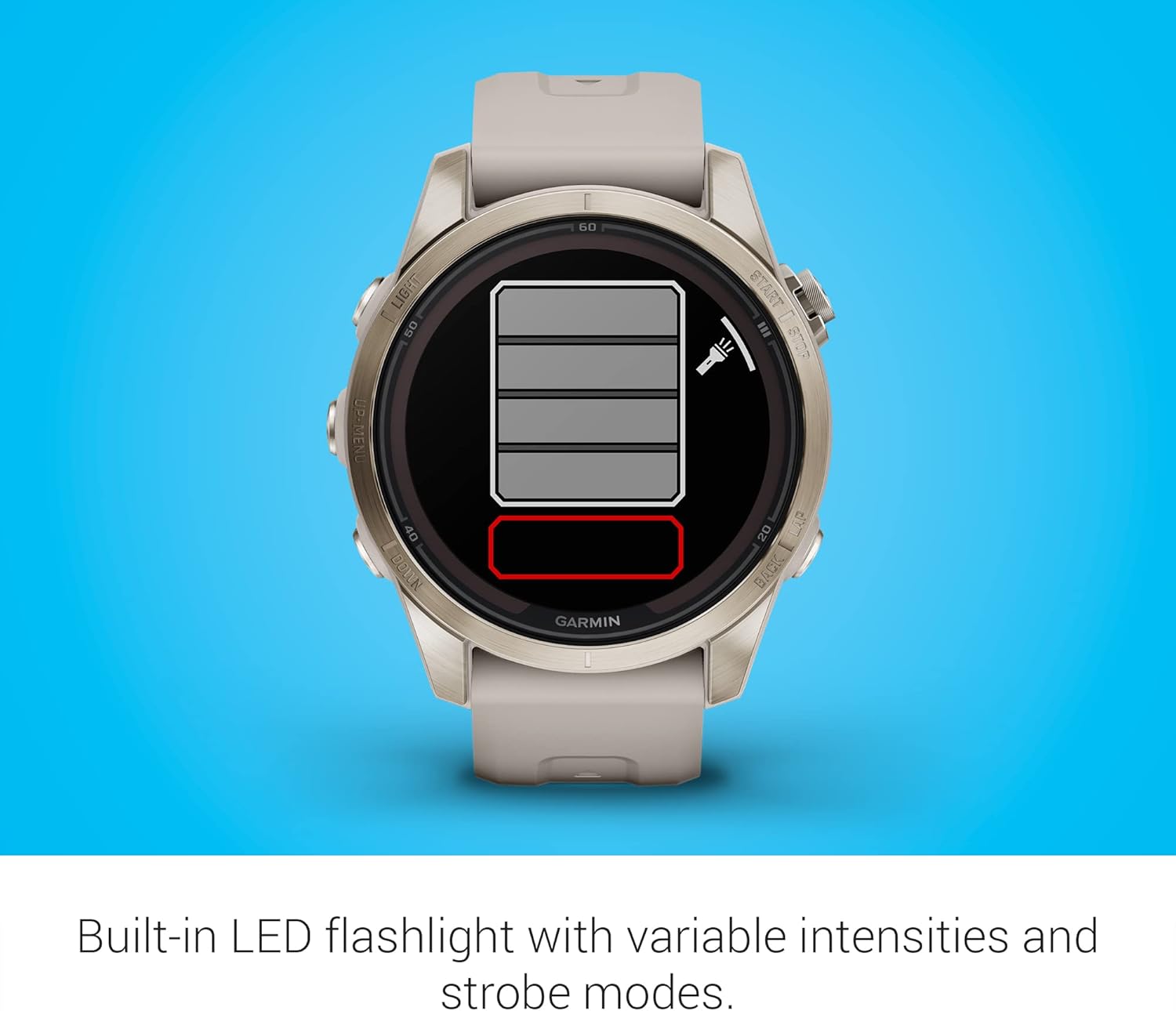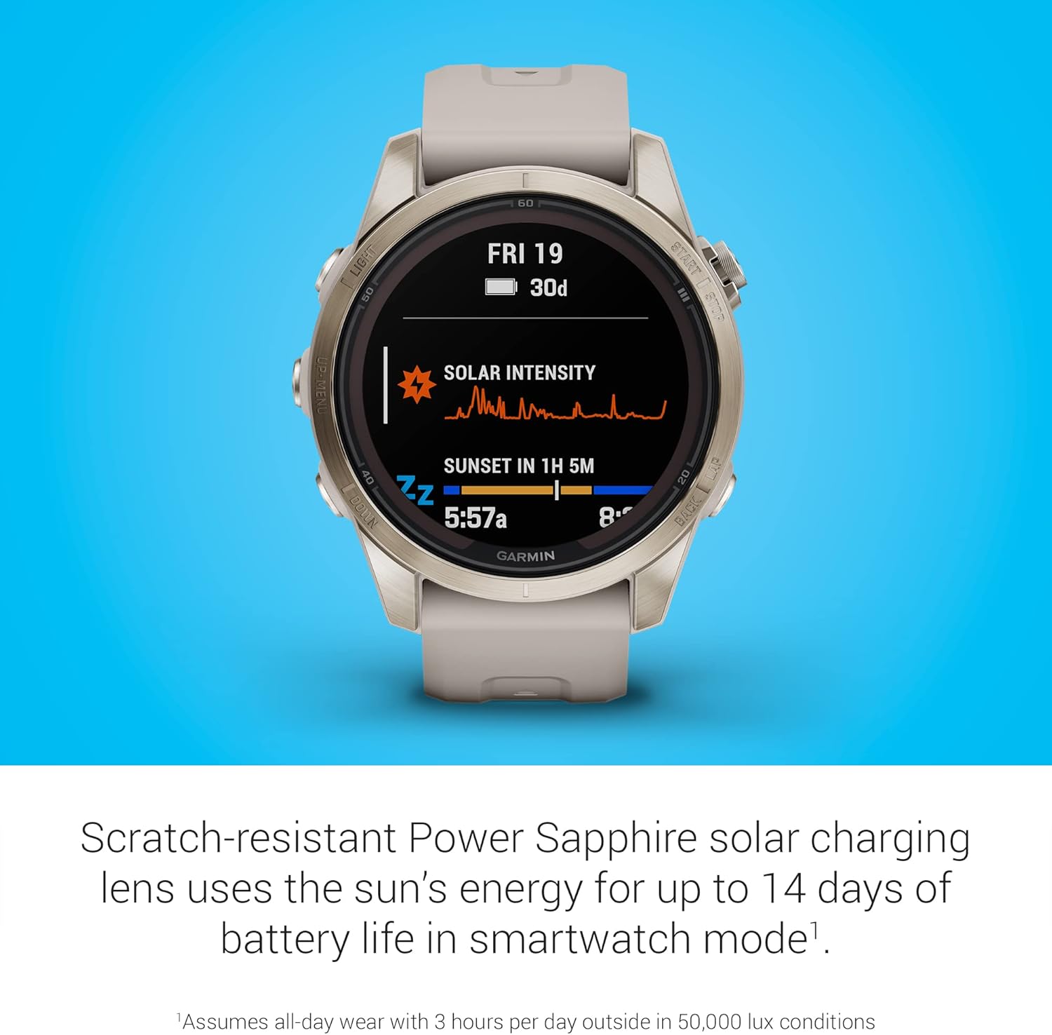 Garmin fēnix 7S Pro Sapphire Solar, Multisport GPS Smartwatch, Built-in Flashlight, Solar Charging Capability, Sand