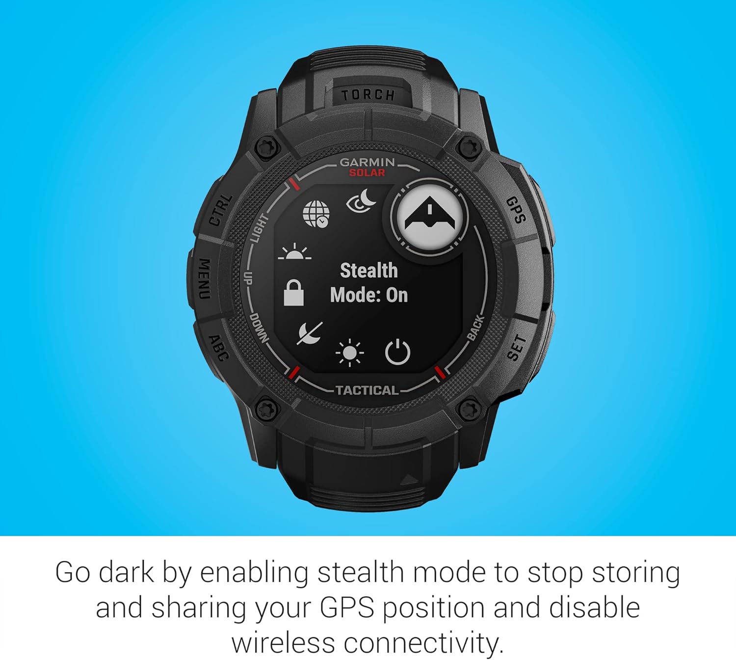 Why just carry out the mission? Own it with Instinct® 2X Solar – Tactical Edition. This bold, rugged GPS smartwatch is built to U.S. military standard (MIL-STD-810), water-rated to 10 ATM and features solar charging for unlimited battery life in smartwatch mode when exposed to 3 hours of direct sunlight (50,000 lux) per day. Dedicated tactical features, such as night vision goggle compatibility, waypoint projection and dual-position GPS format, keep you mission-ready. Stealth mode lets you go dark by disabling wireless communication and data sharing. Count on multi-band signal reception technology to provide more accurate positioning, and multi-GNSS support to provide more reliable service in challenging environments. Stay ready for anything with all-day health monitoring for energy levels, stress, sleep, Pulse Ox, heart rate and more (this is not a medical device, and data presented is intended to be a close estimation of metrics tracked. Pulse Ox not available in all countries).