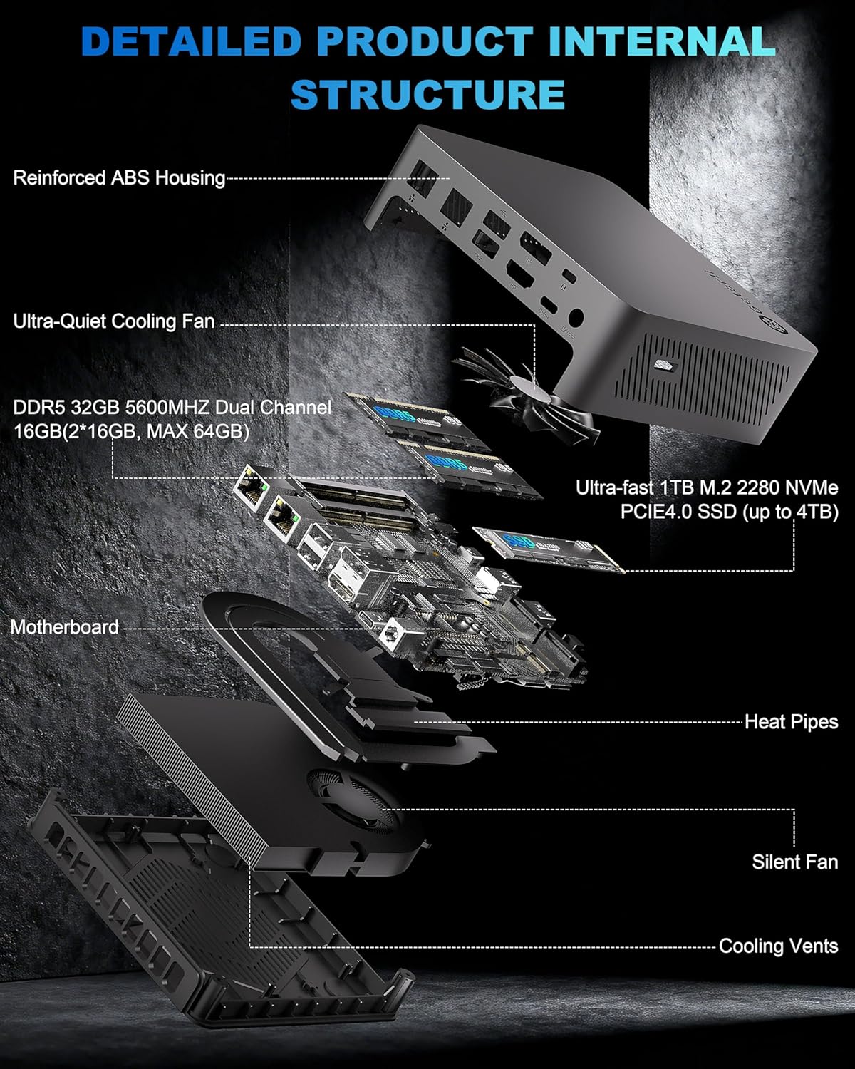 【Advanced Cooling for Sustained Performance】Our advanced cooling system, featuring three high-performance copper heat pipes, efficiently dissipates heat from the powerful CPU. This design guarantees that your AMD mini pc maintains stable, high clock speeds even under sustained heavy loads, preventing thermal throttling for reliable performance in work and play.