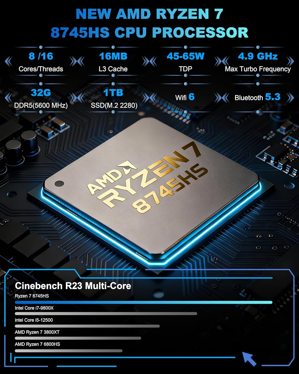 【AMD Ryzen 7 Mini PC, Beastly Performance】Experience the performance of a full-sized desktop condensed into a compact frame. Driven by the formidable 8-core/16-thread AMD Ryzen 7 8745HS processor (up to 4.9GHz) and integrated AMD Radeon 780M graphics, this mini gaming pc handles everything from complex creative workloads and music production to smooth, mainstream gaming with remarkable ease.