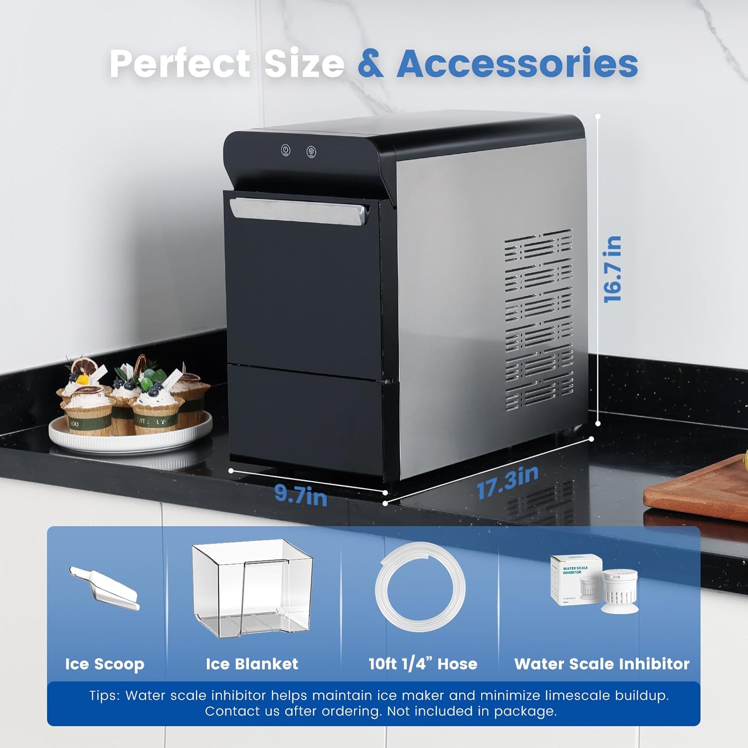 𝐐𝐮𝐢𝐞𝐭 𝐎𝐩𝐞𝐫𝐚𝐭𝐢𝐨𝐧-This pellet ice maker features a high-performance compressor, muffled exhaust fan, and precision components to operate at just about 50dB—quieter than a normal conversation. Enjoy fresh ice without disruptive noise, perfect for homes, offices, or late-night use.