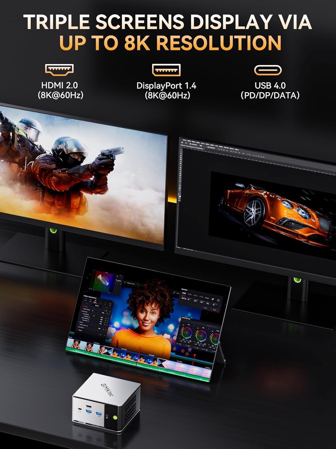 COMMAND A TRIPLE DISPLAY WORKSTATION – Create an immersive and highly productive multi-display setup. Connect up to three displays simultaneously using the combination of HDMI 2.0, DisplayPort 1.4, and USB4/DP ports for a seamless workflow or an epic, multi-screen gaming work environment.
