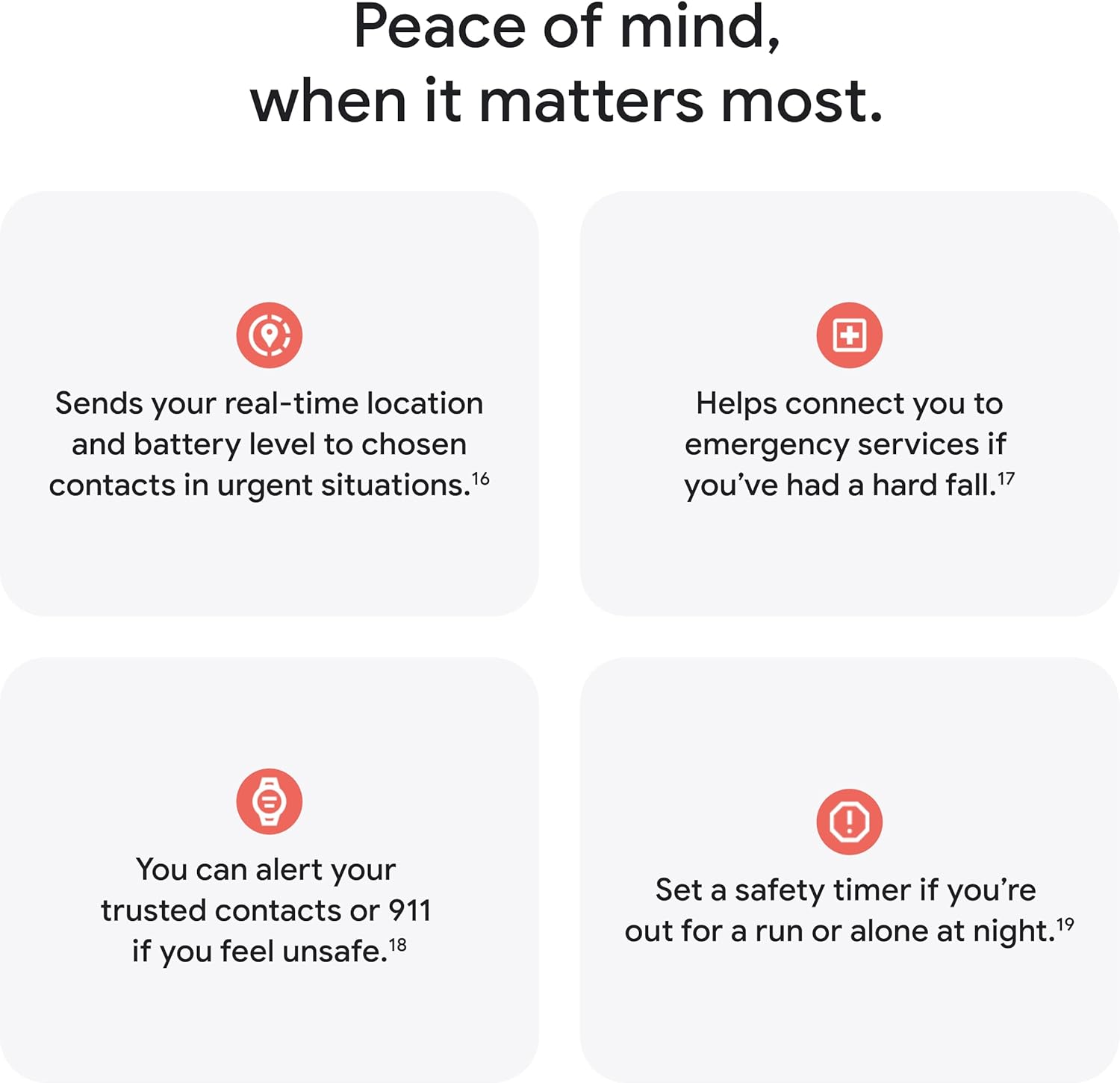 Loss of Pulse Detection can detect a loss of pulse event and prompt a call to emergency services[12]; and if you need help when you’re in a remote location, the Pixel Watch 4 can connect you to emergency services through geostationary satellites[2,13]