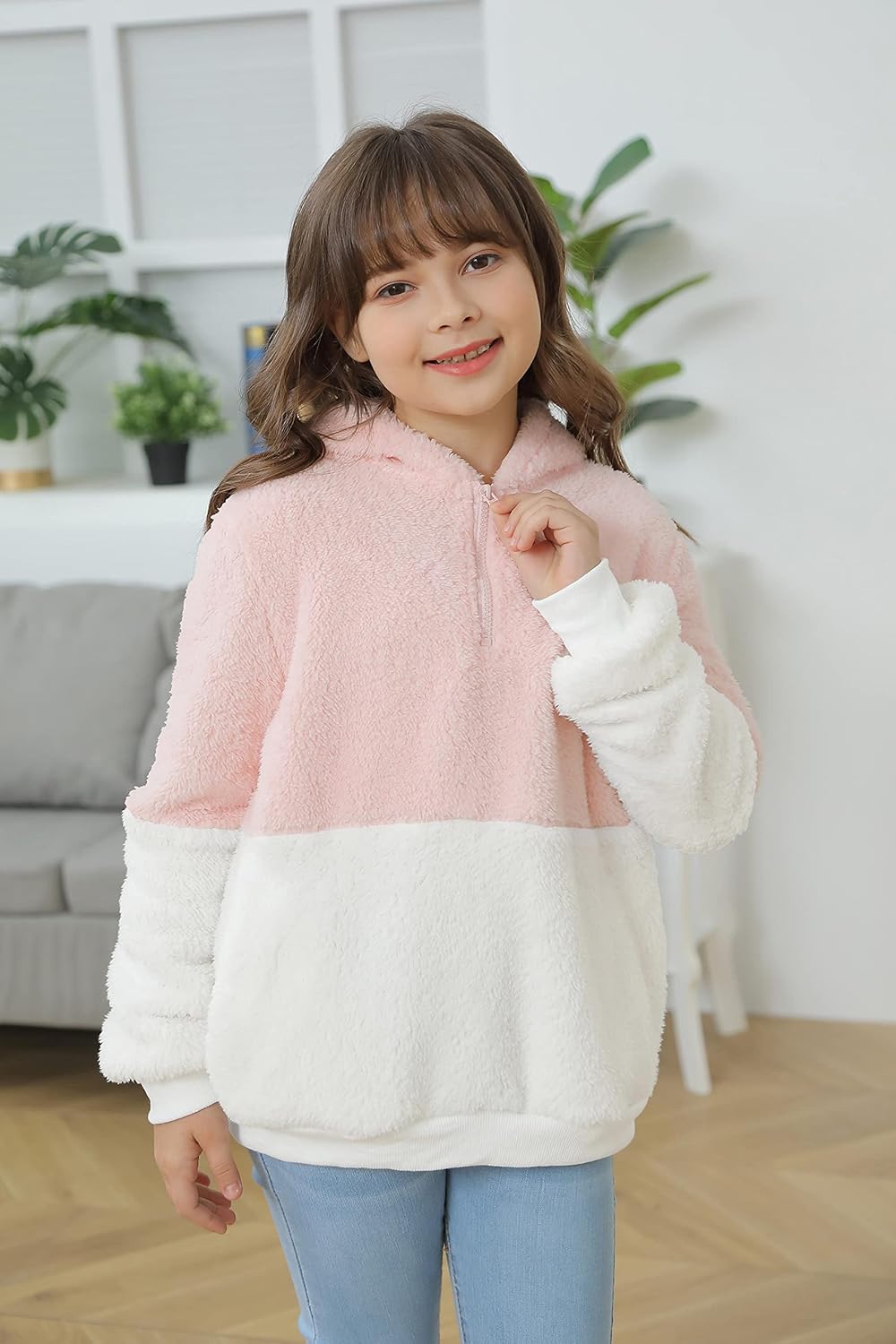Haloumoning Girls Fuzzy Fleece Pullover Hoodies Sweatshirt Casual Loose Outwear Coat with Pockets 4-15 Years