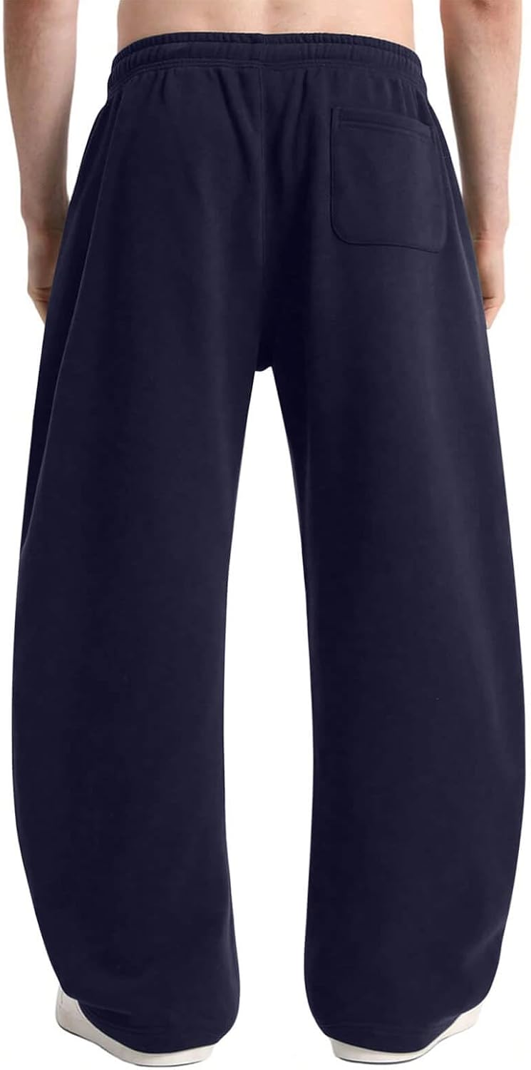 HeSaYep Men’s Fleece Baggy Sweatpants Wide Leg Barrel Sweat Pants Lounge Athletic Gym Pants with Pockets