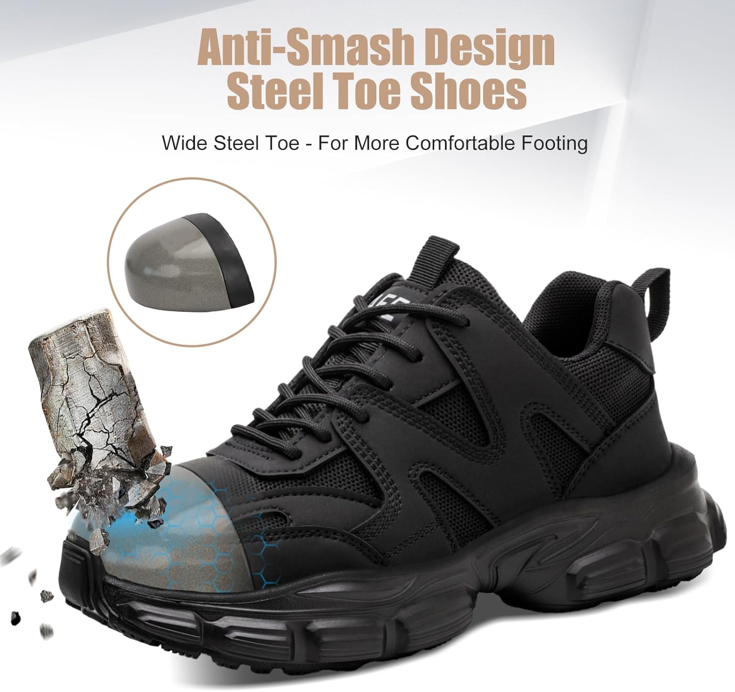 Hogent Steel Toe Shoes for Women Men Wide Non Slip Composite Work Sneakers Indestructible Comfortable Safety Tennis Shoes Lightweight Breathable Construction Sneakers Puncture Proof Ergonomic Design