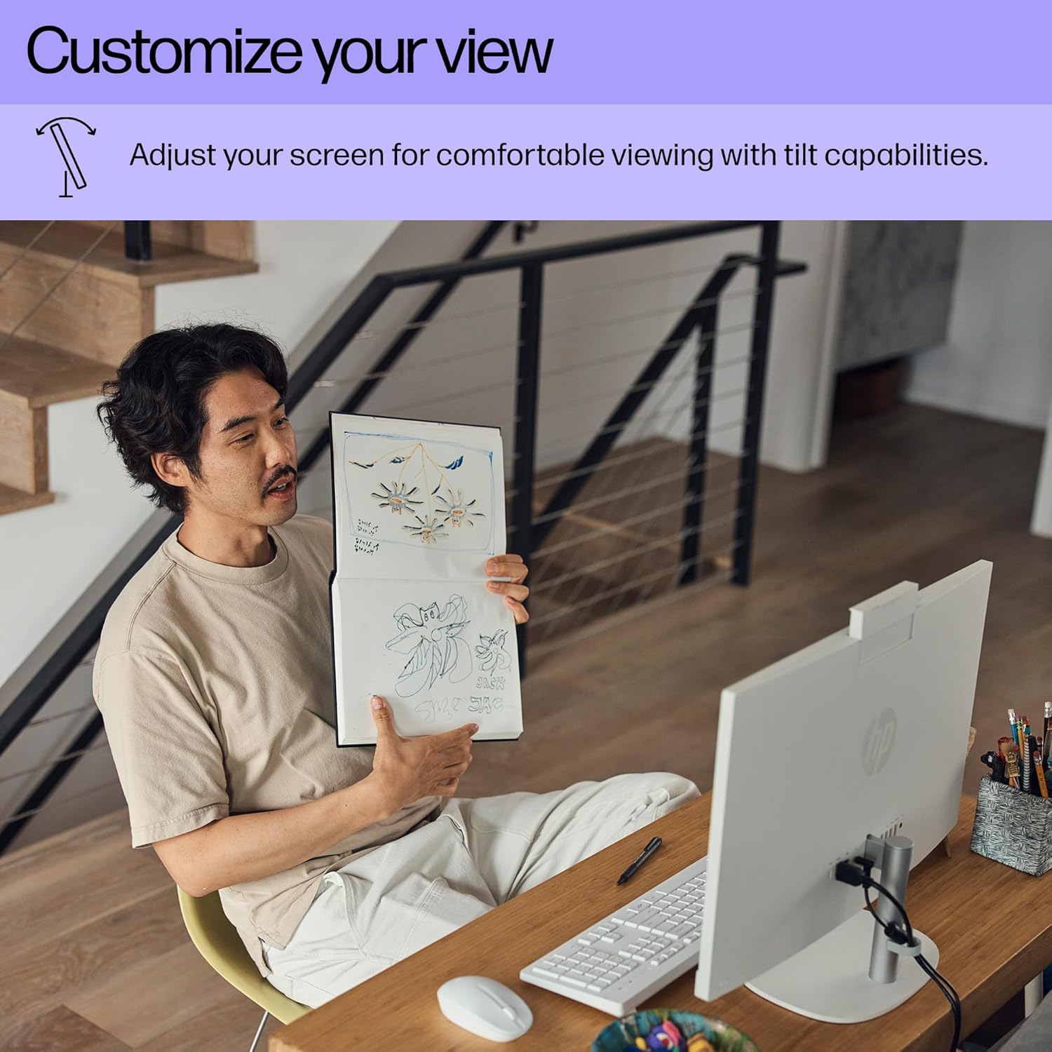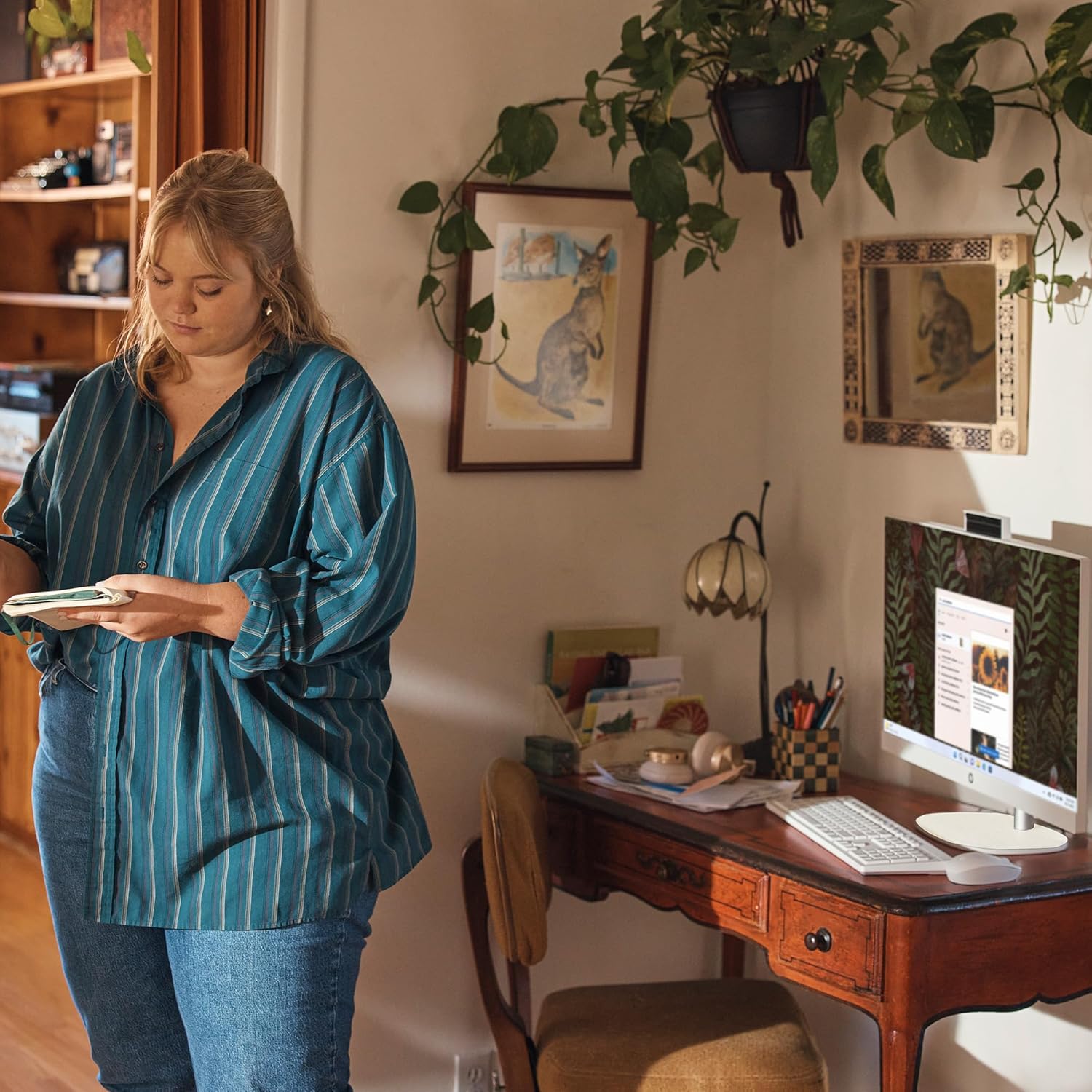 HP 27″ FHD Touchscreen All-in-One Desktop Computer, 16GB DDR5 RAM, 1TB SSD Storage, AMD Ryzen 5 7520U Processor, WiFi6, Wireless Keyboard & Mouse, Windows 11