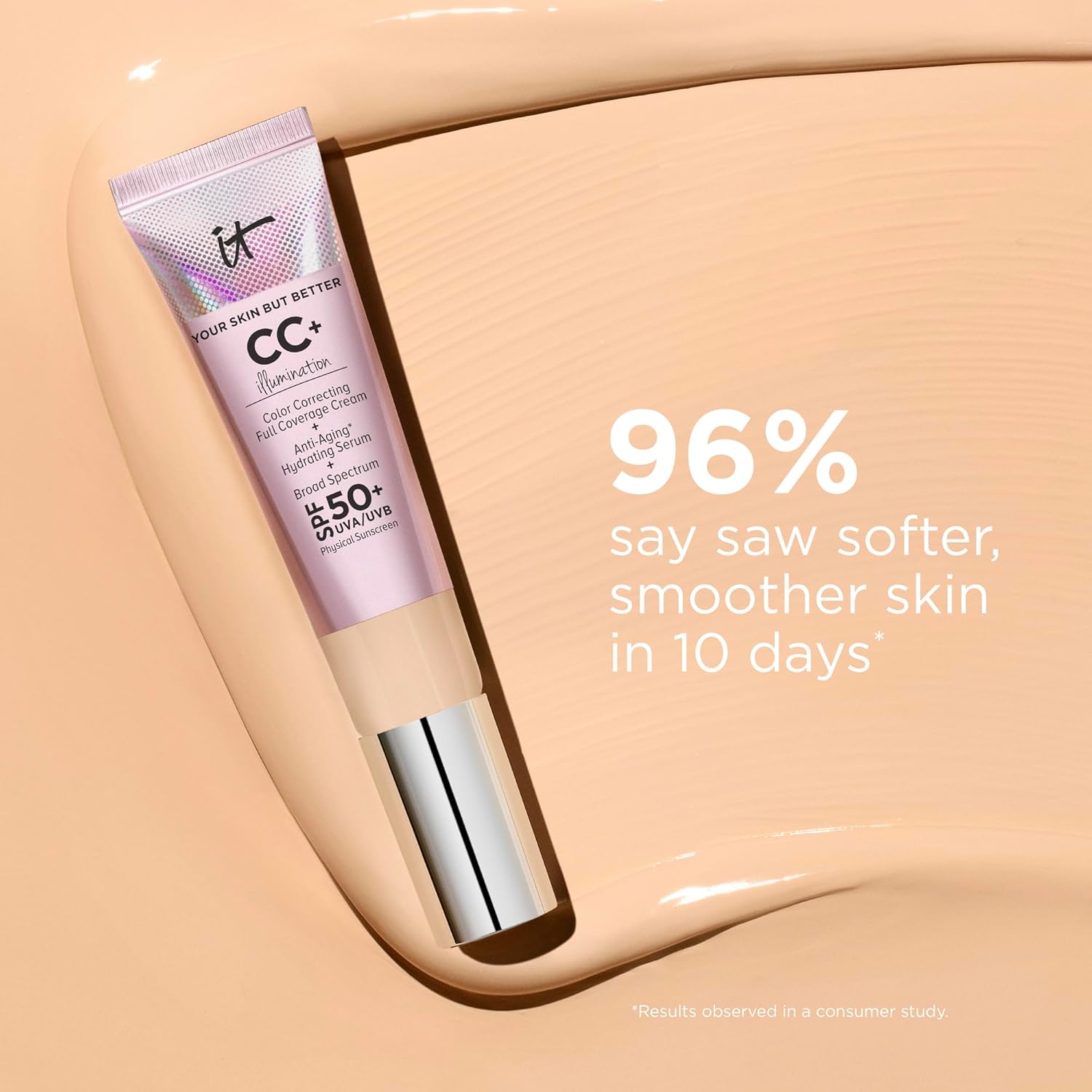 IT Cosmetics CC+ Cream Illumination – Radiant Full Coverage Foundation With SPF 50+, Color Corrector & Hydrating Anti-Aging Serum, Hydrolyzed Collagen + Peptides, Normal to Dry Skin – 1.08 fl oz